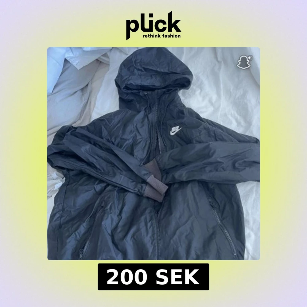 Svart vindjacka från Nike med huva och dragkedja framtill. Jackan har två fickor med dragkedja och ribbade muddar vid ärmsluten. Perfekt för blåsiga dagar och enkel att slänga på sig över en hoodie. Storlek S, ny kostar 1000kr
