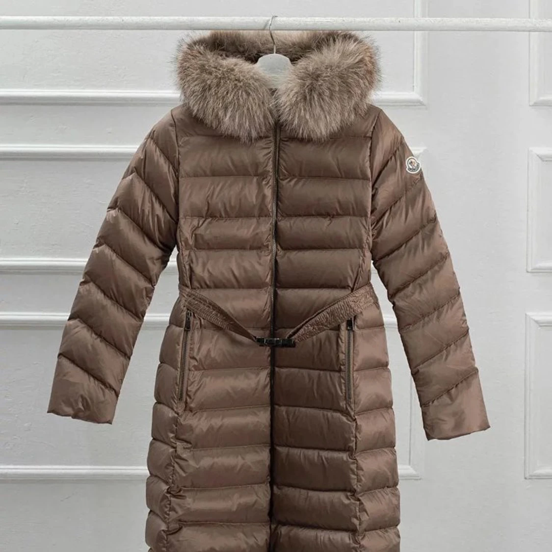 Säljer två snygga dunjackor med pälskrage, en i svart och en i brun. Båda har en figursydd passform med dragkedja och bälte i midjan. Perfekta för vintern med sin långa design och varma material. Jackorna har långa ärmar och en stilren look. Passar både till vardags och festliga tillfällen.