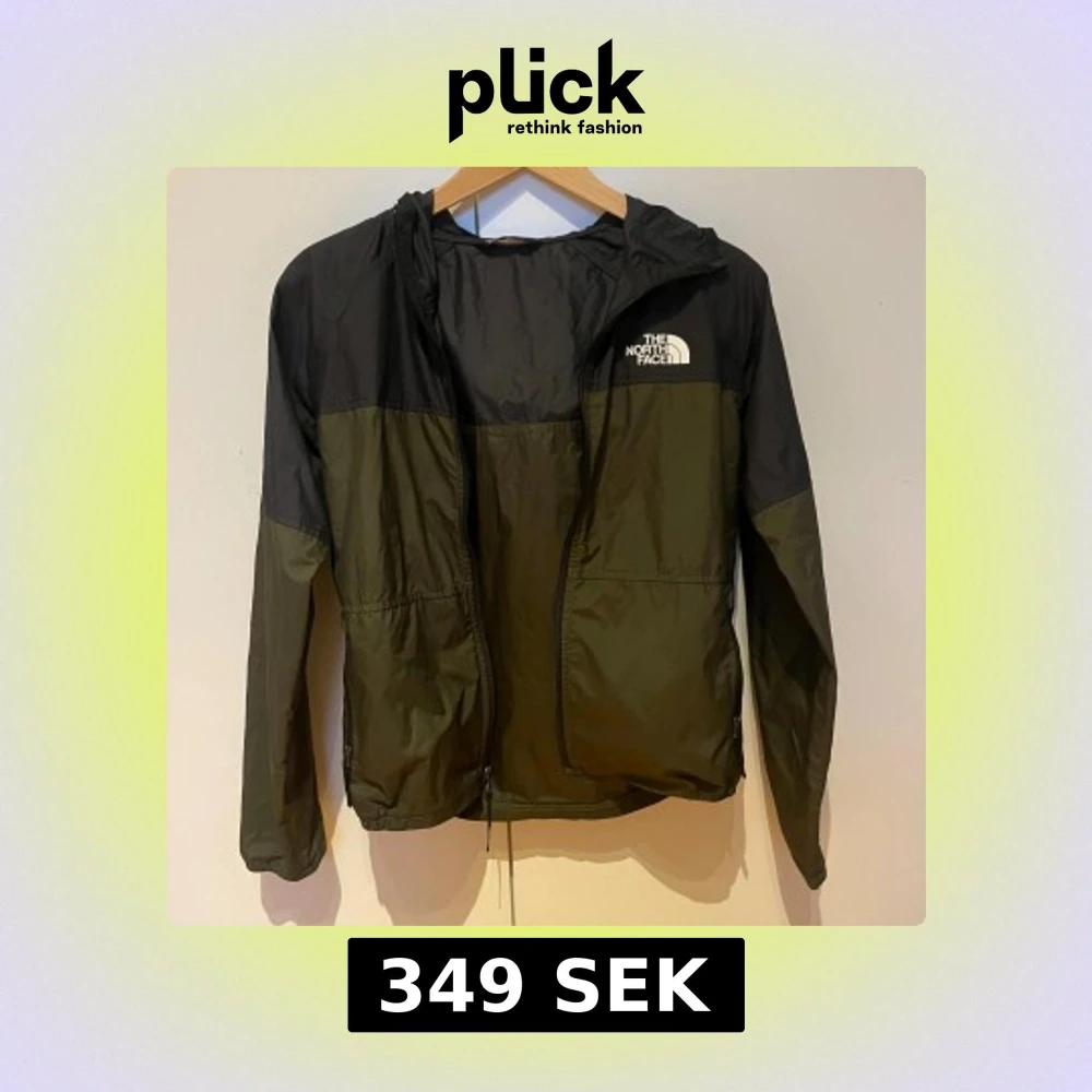 Snygg vindjacka från The North Face i svart och olivgrönt med huva och dragkedja framtill. Jackan har logga på bröstet och ryggen, samt praktiska fickor med dragkedja. Sitter som xs. Hör av dig för mer frågor💫