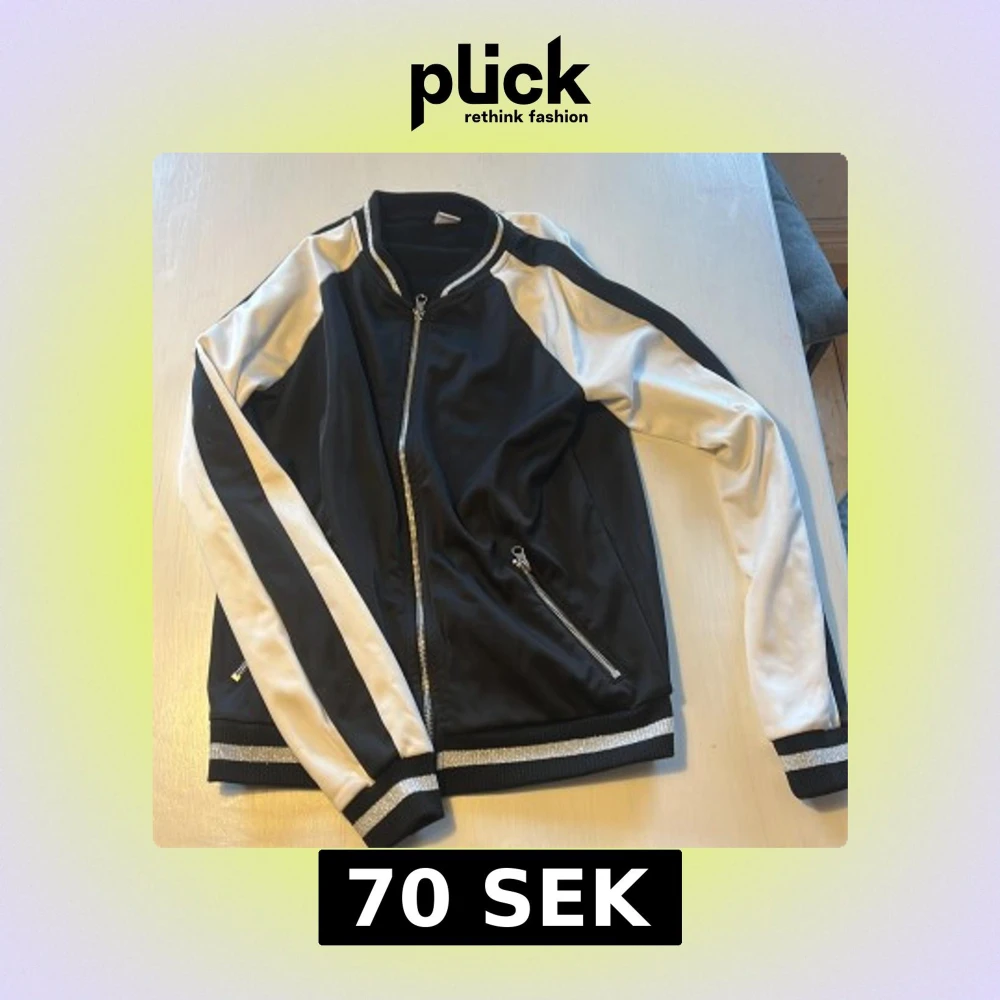 Snygg svart och vit bomberjacka från Lindex med dragkedja framtill och ribbade muddar. Jackan har långa ärmar och en sportig look med kontrasterande vita paneler längs ärmarna. Strl 170. Endast använd enstaka gånger.