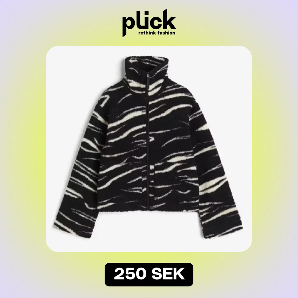 Supermysig teddyjacka i svart och vitt zebramönster.
