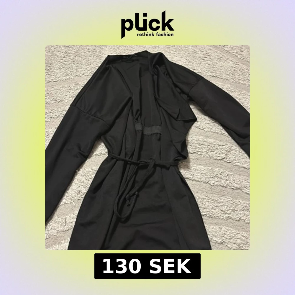 Svart långärmad kappa i omlottmodell med bälte i midjan. Jackan har en stilren och enkel design med mjukt, lätt material som ger ett snyggt fall. Perfekt för dig som gillar minimalistisk stil och vill ha något som funkar till många outfits.