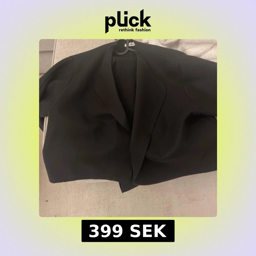 Säljer en svart kavaj från Wikipe med omlottmodell och tillhörande bälte i midjan. Kavajen har en stilren design med breda slag och rak passform. Perfekt för dig som gillar minimalistisk och clean stil.