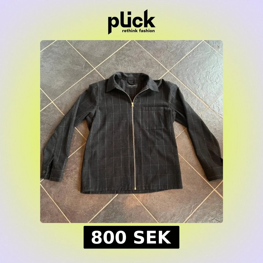 Stilren svart overshirt från A Day's March med diskret rutmönster och silverfärgad dragkedja. Skjortan har klassisk krage, bröstficka och raka ärmar med knapp vid ärmslut. Den är i bra skick och i storlek medium!