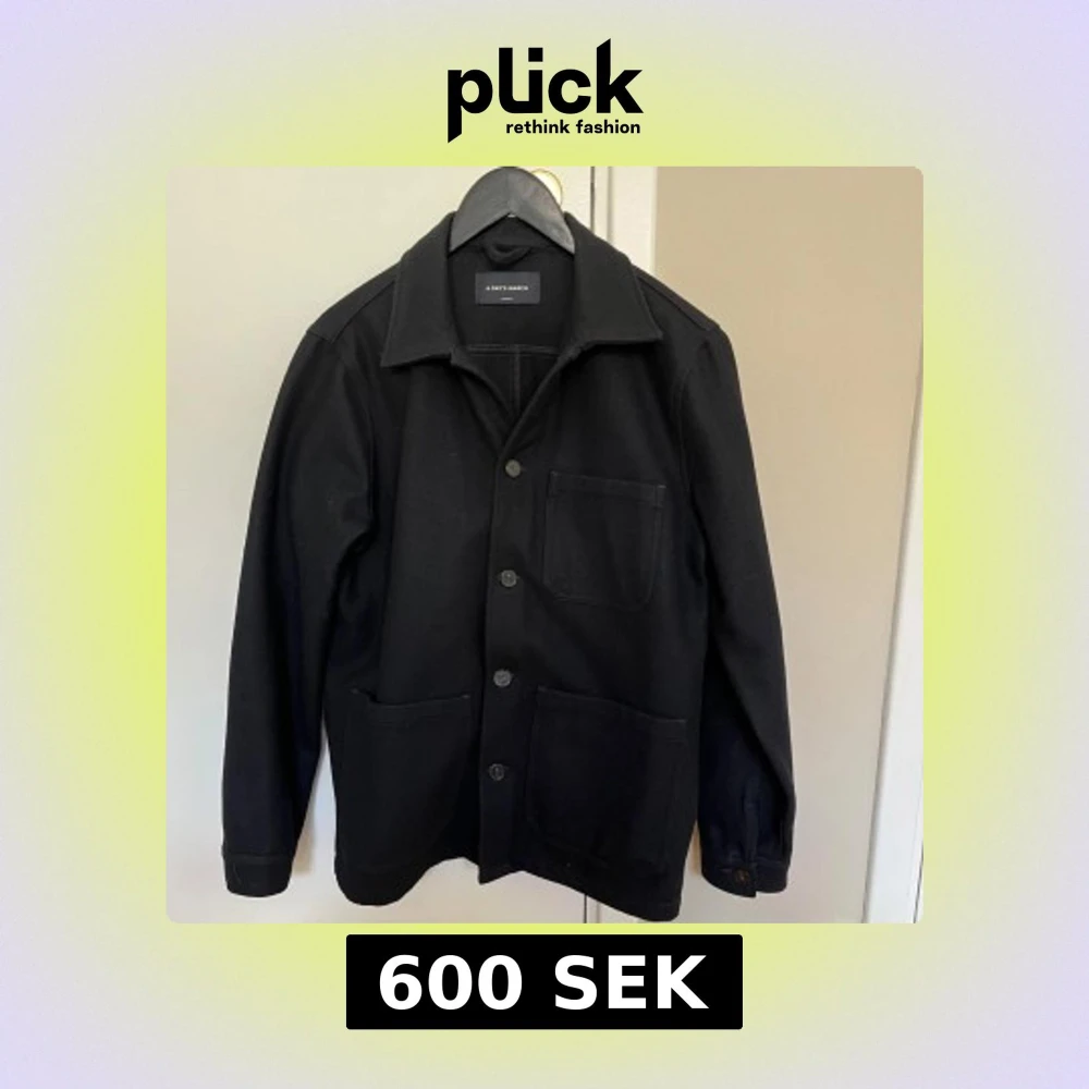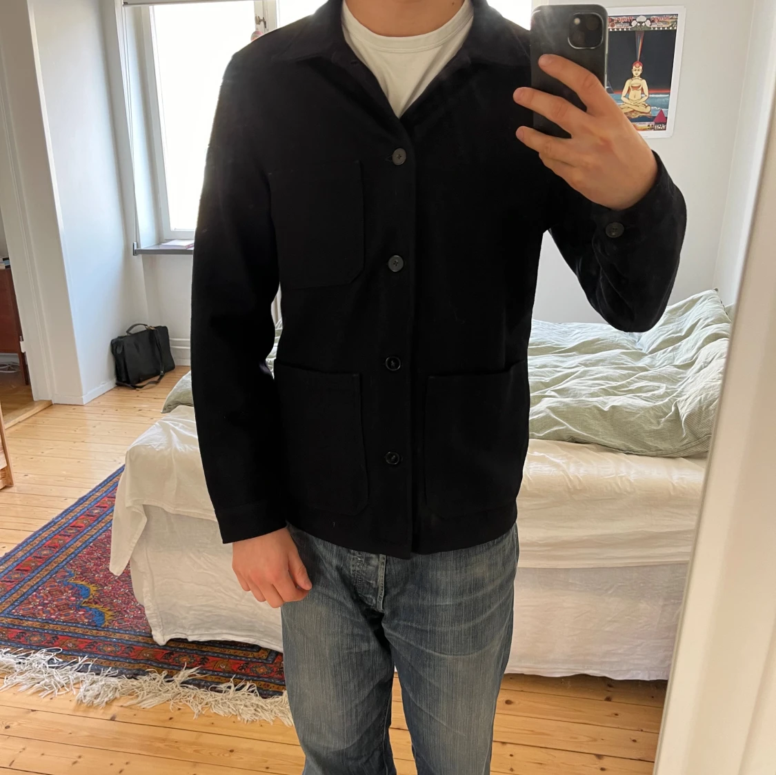 Stilren mörkblå overshirt från A Day's March i ullmix. Jackan har tre stora utanpåfickor, klassisk krage och knäppning med fyra knappar framtill. Perfekt lager-på-lager-plagg med rak passform och lång ärm.