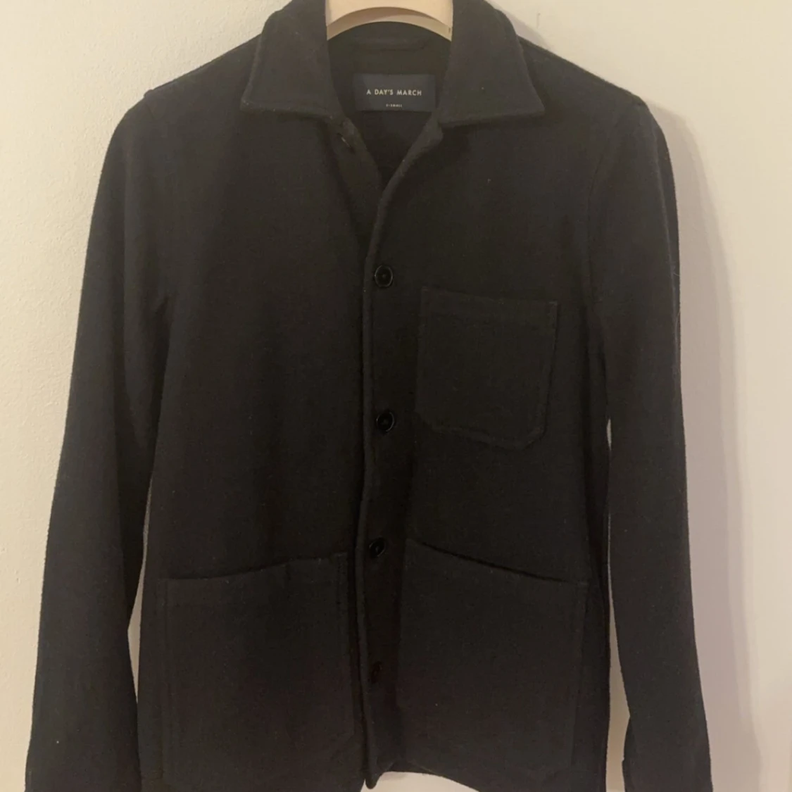 Snygg svart overshirt från A Day's March med knappar framtill och praktiska fickor. Den är i bra skick och väldigt fräsch! Den är i 10/10 , anställd ett fåtal gånger.