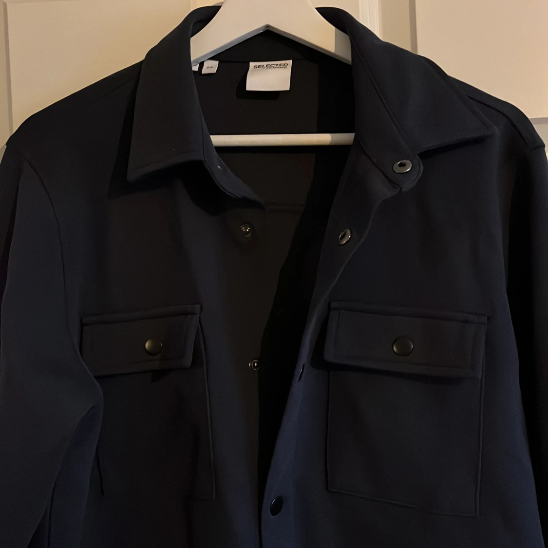 Stilren svart overshirt från Selected Homme med klassisk krage och två bröstfickor med knappar. Perfekt lager-på-lager-plagg med lång ärm och snygga detaljer. Enkel att matcha och ger en clean look. Aldrig använd ny pris 800 mitt pris 500