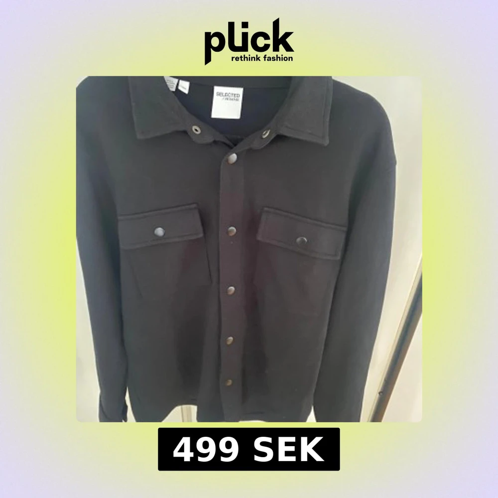 Stilren svart overshirt från Selected Homme. Den är perfekt nu till hösten och vintern. Den passar dig runt 175. Hör gärna av dig vid minsta fundering 🙌🙌