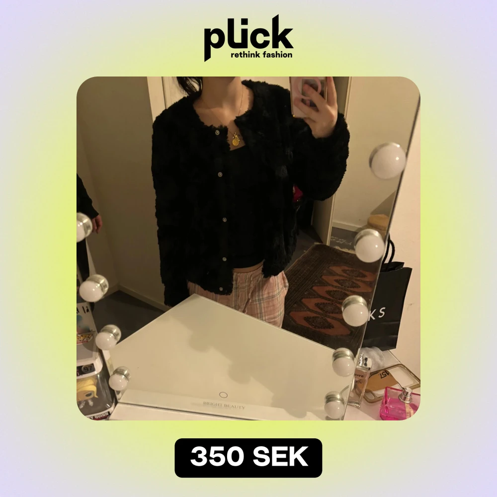 Säljer en supermjuk och fluffig svart pälsjacka. Den har en klassisk design med knappar framtill och är perfekt för att hålla sig varm och stilren under kyliga dagar. Jackan är i mycket bra skick och passar perfekt för höst och vinter. Perfekt för att ge din outfit en lyxig touch!