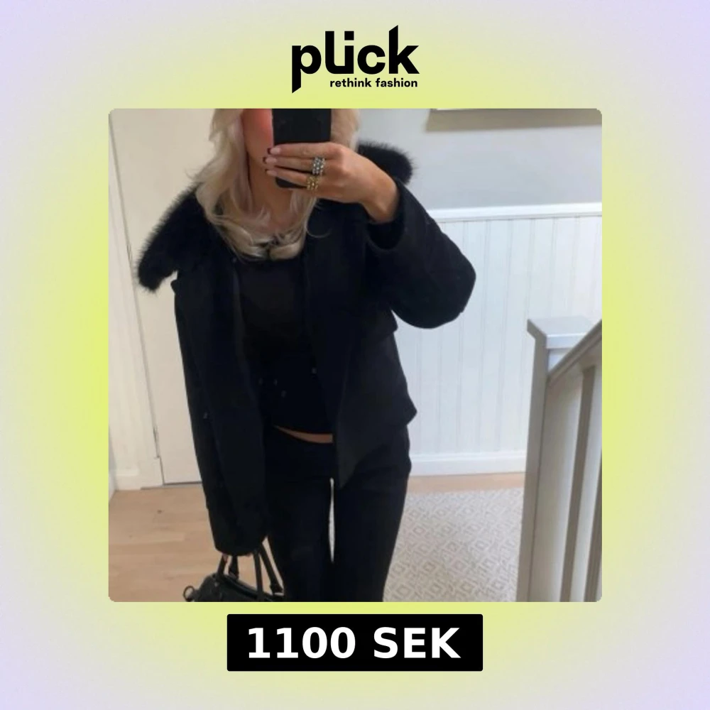 Säljer en svart pälsjacka från NOIR med fluffig päls runt kragen och stora fickor framtill. Använd fåtal ggr.