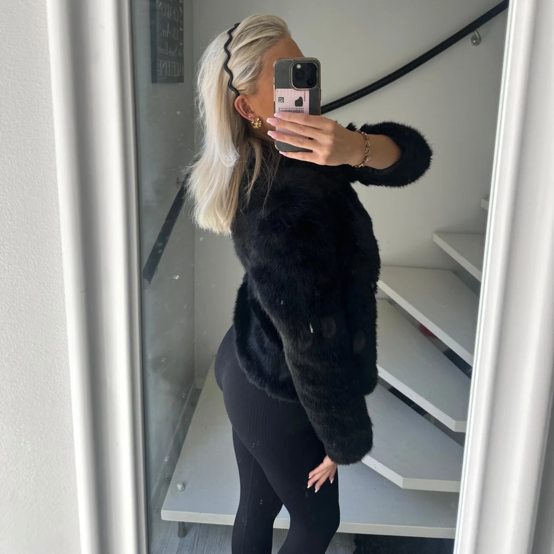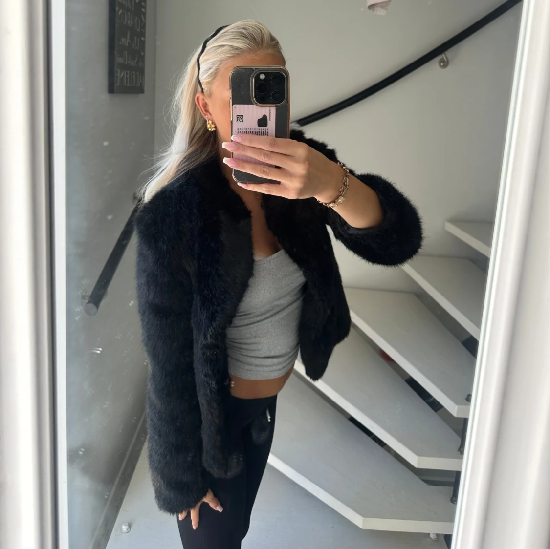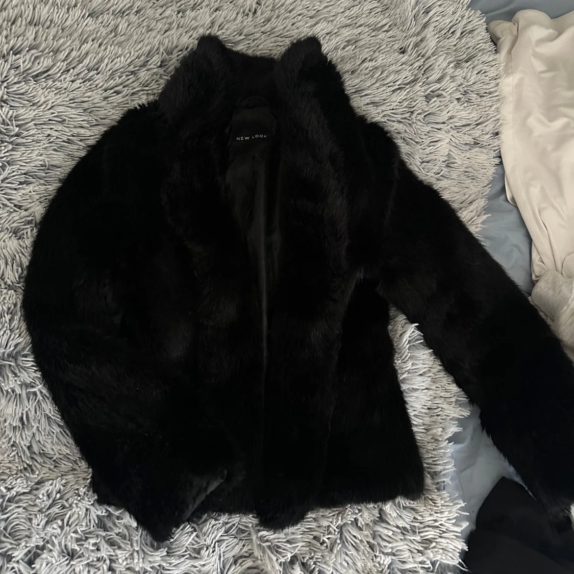 Säljer en elegant svart pälsjacka från New Look. Jackan har en klassisk design med långa ärmar och en mjuk, lyxig känsla. Perfekt för att hålla sig varm och stilren under kallare dagar.