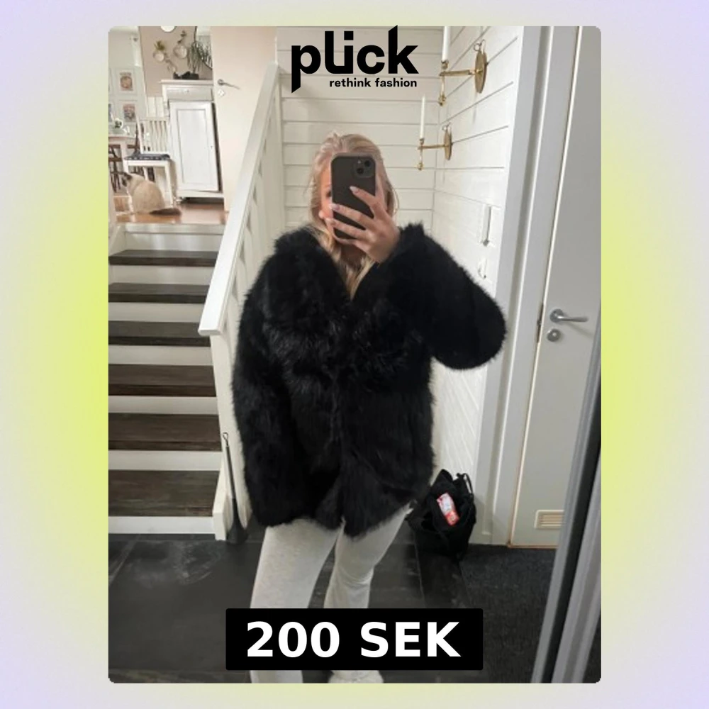 Säljer en svart pälsjacka med fluffig känsla och oversized passform. Jackan har lång ärm och är helsvart utan synliga detaljer eller mönster. Perfekt för dig som vill ha en statementjacka med mycket volym och cool look.