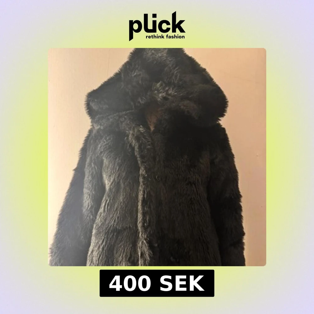 Säljer en snygg svart pälsjacka från Monki med huva. Jackan har en mjuk och fluffig. Den är lång och varm, perfekt till kalla dagar.