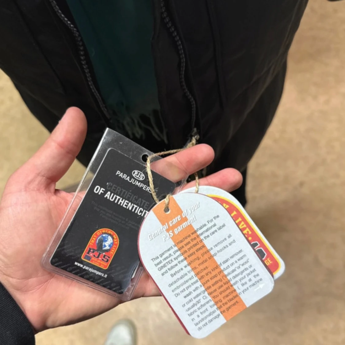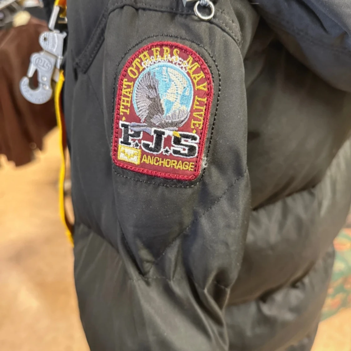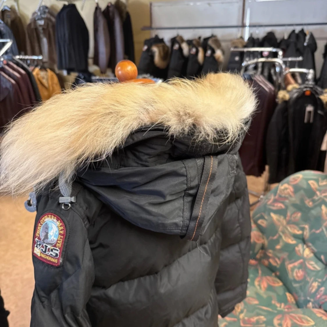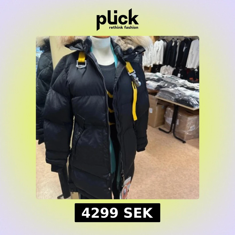 Svart dunjacka från Parajumpers med gul detalj vid dragkedjan och stor huva med fluffig päls. Jackan har patch på ärmen, flera fickor och coola spännen. Perfekt för kalla dagar när du vill hålla stilen och värmen.