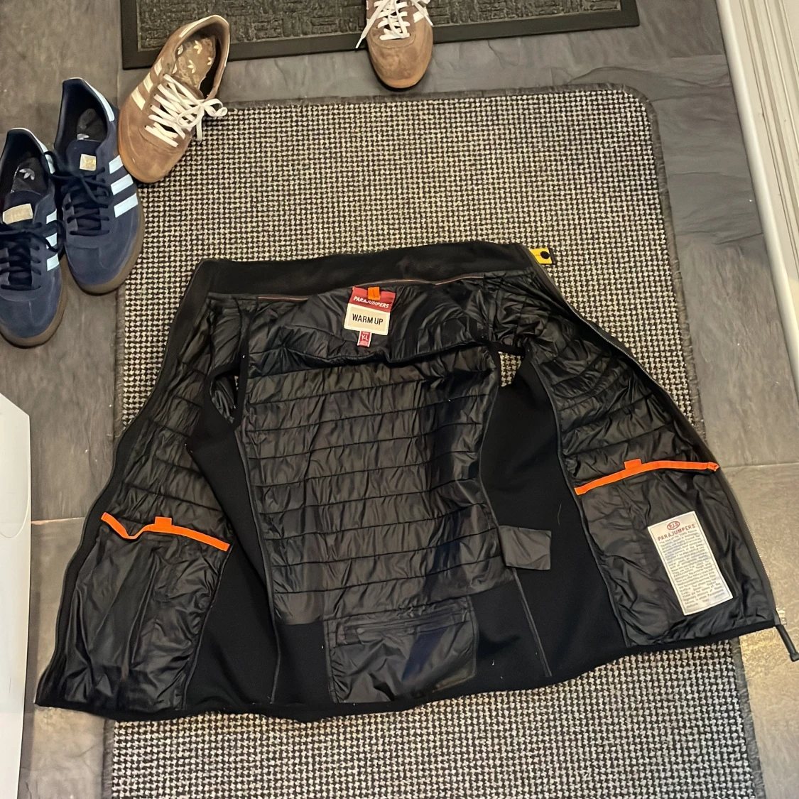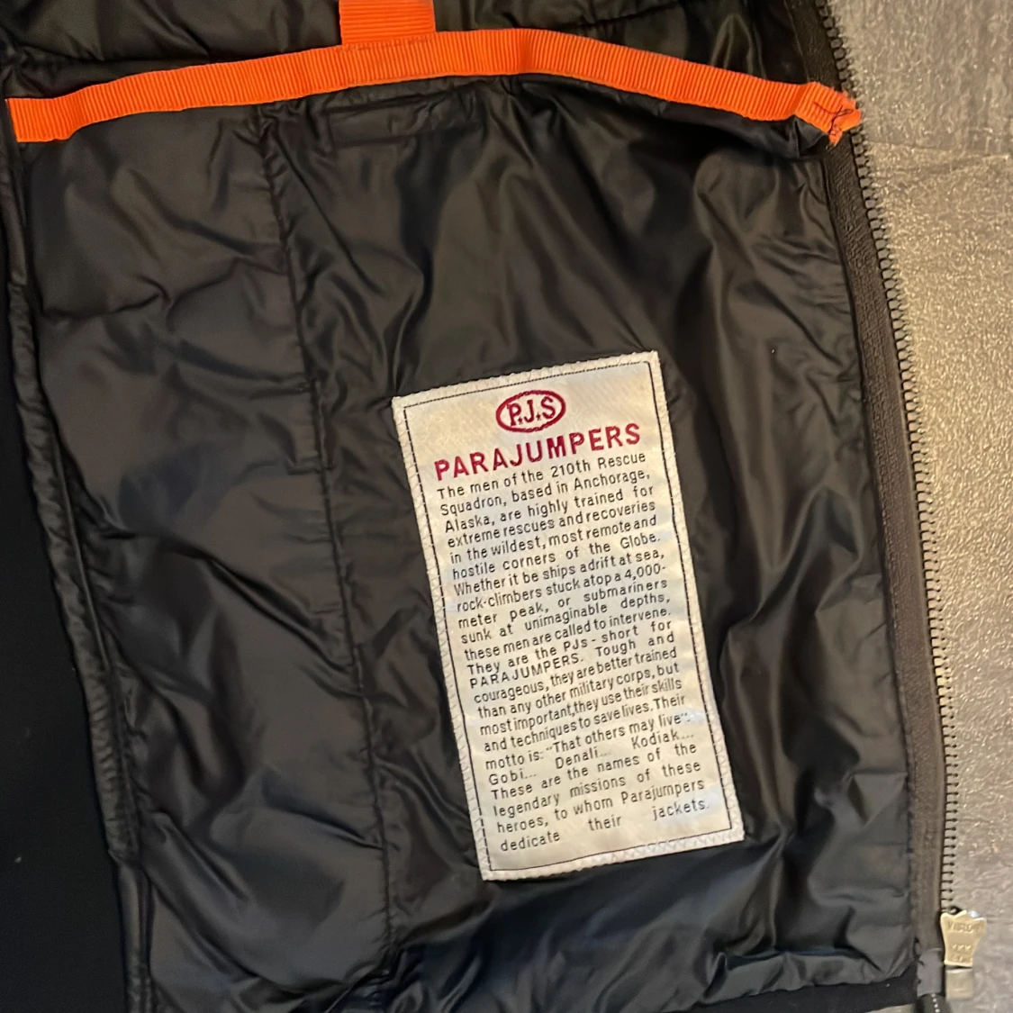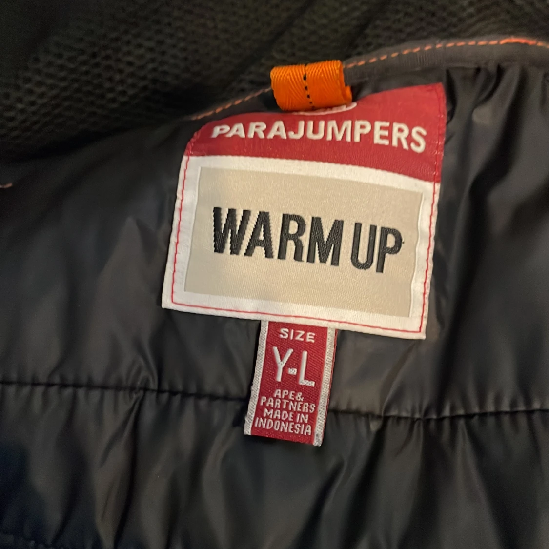 Säljer en svart Parajumpers Warm Up jacka i storlek YL. Jackan har quiltade partier på insidan, orange detaljer och klassisk PJS-logga. Materialet är polyester och jackan har dragkedja. Perfekt för dig som vill ha en stilren och funktionell jacka.