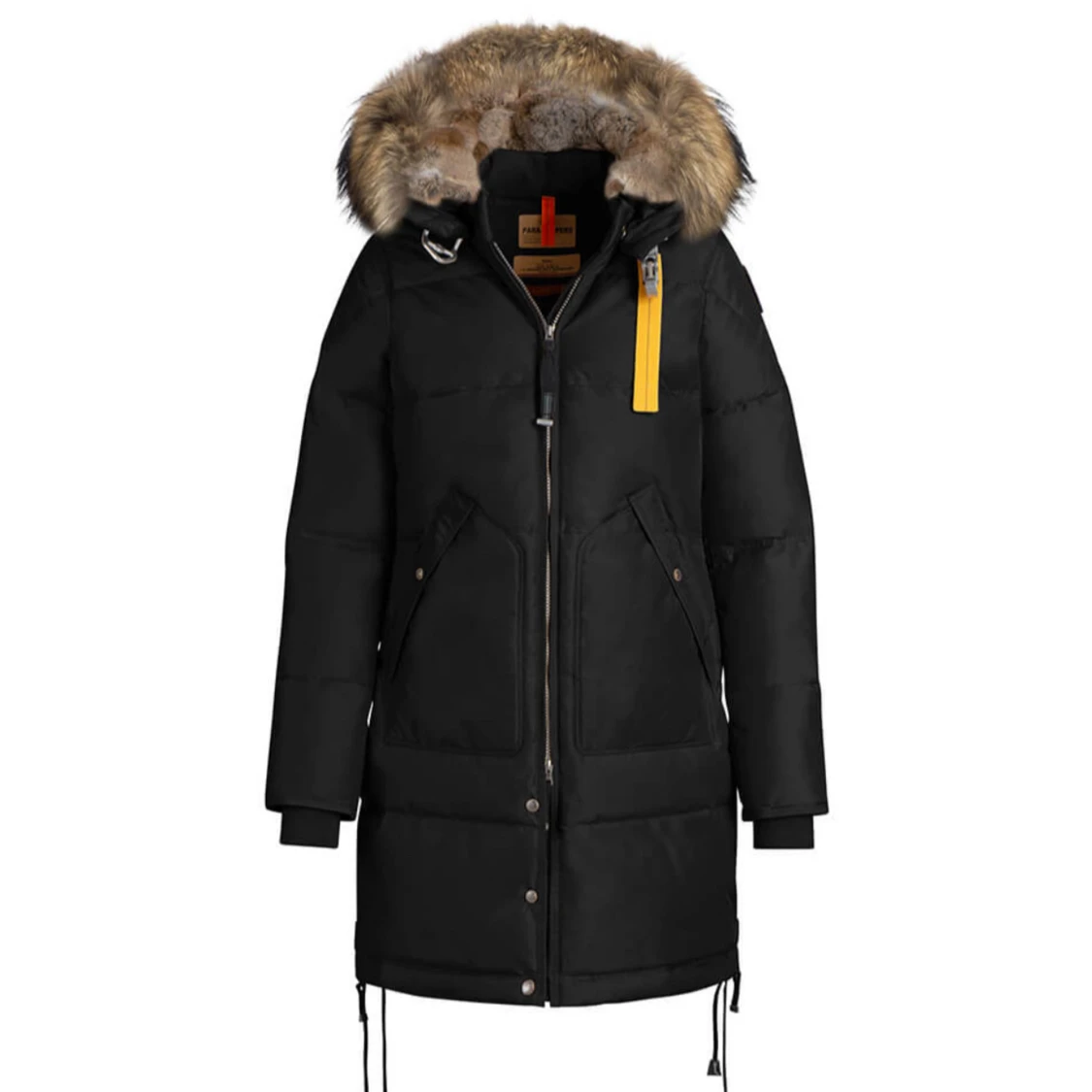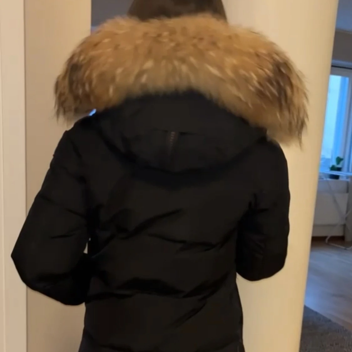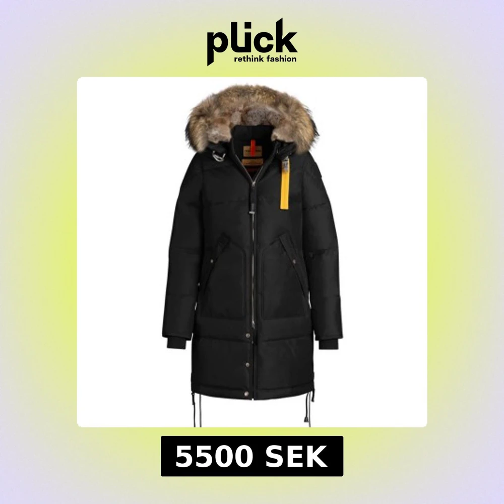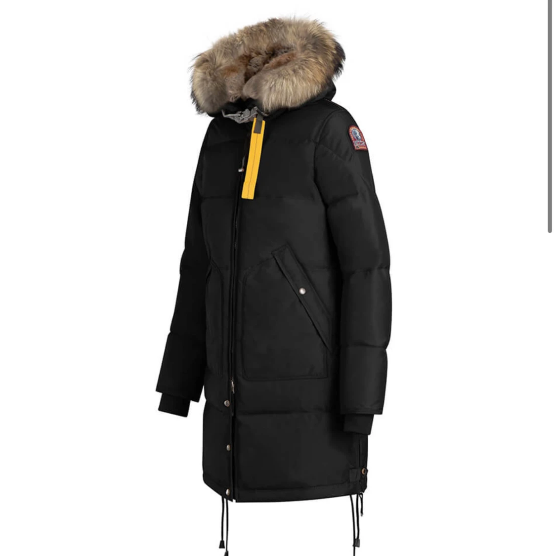 Säljer en svart Parajumpers lång dunjacka med fluffig päls på huvan och gul detalj vid halsen. Jackan har dragkedja, knappar och snörning nedtill. Perfekt för kalla dagar med sin tjocka, quiltade design och snygga passform. Den är äkta + päls. Lite smink vid kragen annars är den jättesnygg och inga defekter💕