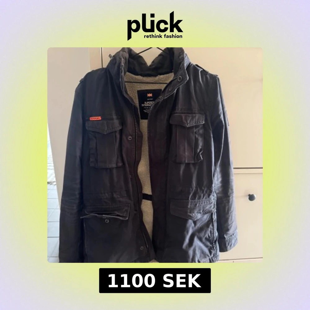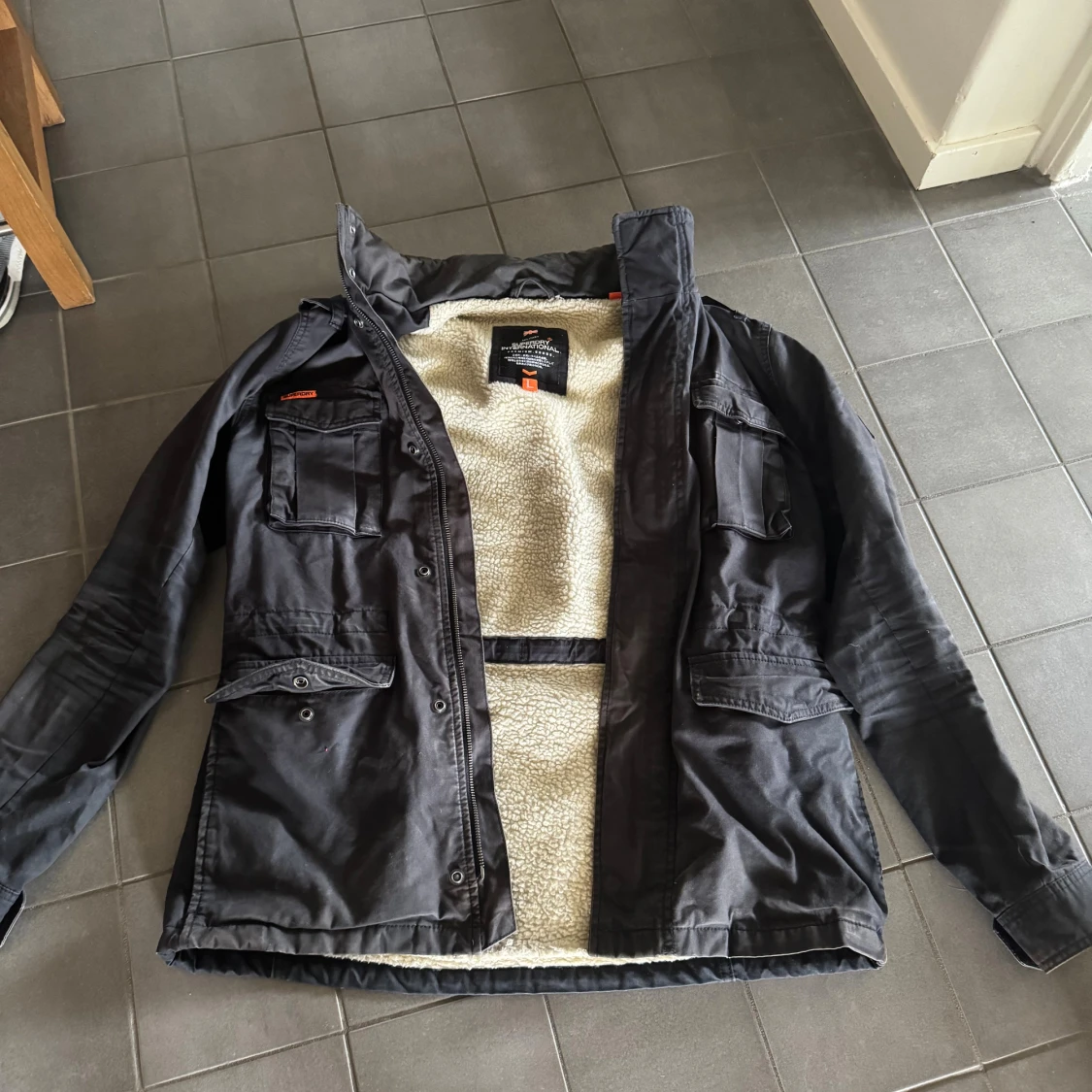 Stilren Field jacket från Superdry. Jackan har både dragkedja och knappar framtill, samt hög krage och emblem på ärmen. Perfekt för kalla dagar.