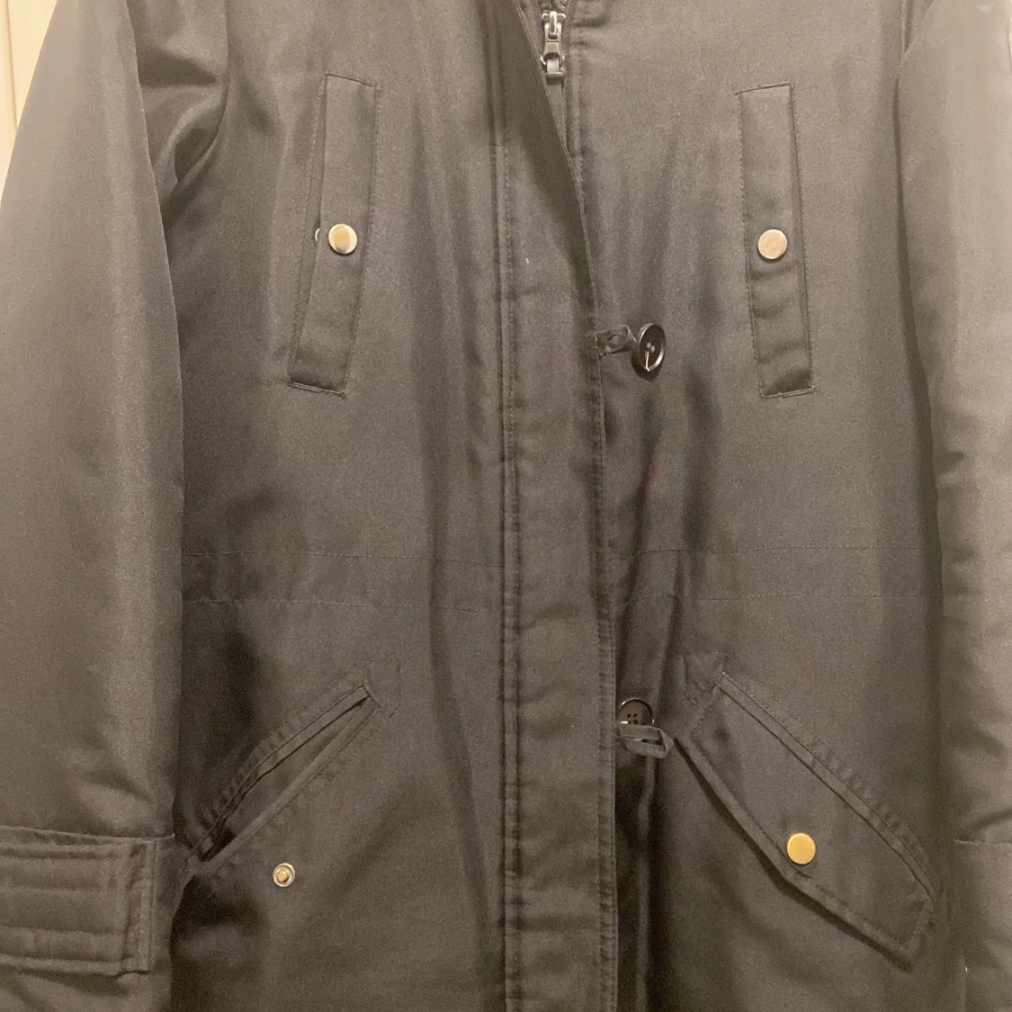 Snygg svart parkajacka från Vero Moda med huva och dragkedja. Jackan har knappar och praktiska fickor med tryckknappar.