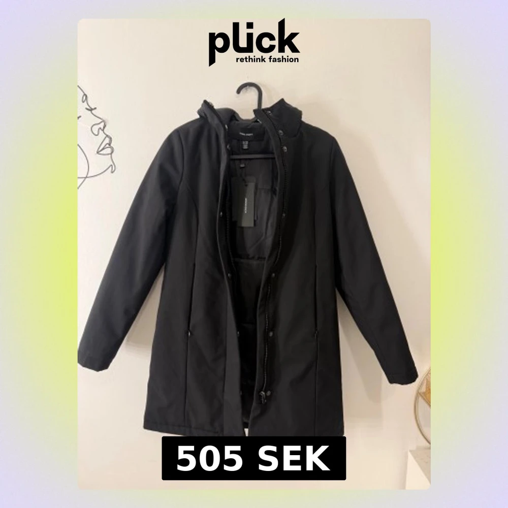 Svart parkajacka från Vero Moda med huva och dragkedja framtill. Jackan har en clean look med långa ärmar och diskreta fickor på sidorna. Perfekt för dig som gillar stilrena och funktionella ytterplagg. Materialet är syntet och jackan har normal passform. Storlek XXS Petite modell