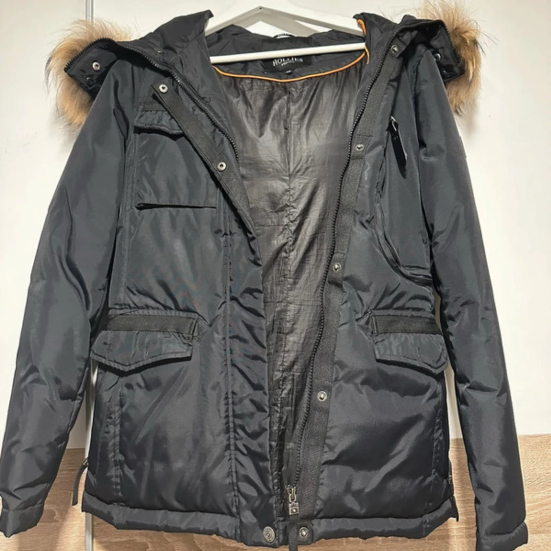 Svart parkajacka från Hollies med huva och äkta päls. Jackan har flera praktiska fickor framtill, dragkedja och knappar. Perfekt för kyliga dagar med sin varma och skyddande design. Klassisk och stilren look.