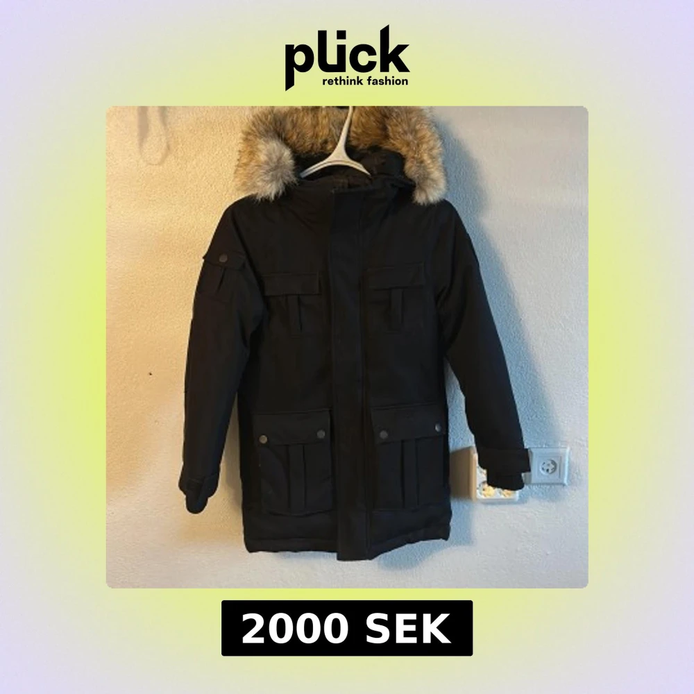 Säljer en stilren svart jacka från Nobis med avtagbar päls på huvan. Nypris på jackan ligger på 10 000kr. Jackan har flera praktiska fickor med knappar och en diskret logga på ärmen. Perfekt för kalla dagar. Storlek L barn. Priset kan diskuteras!