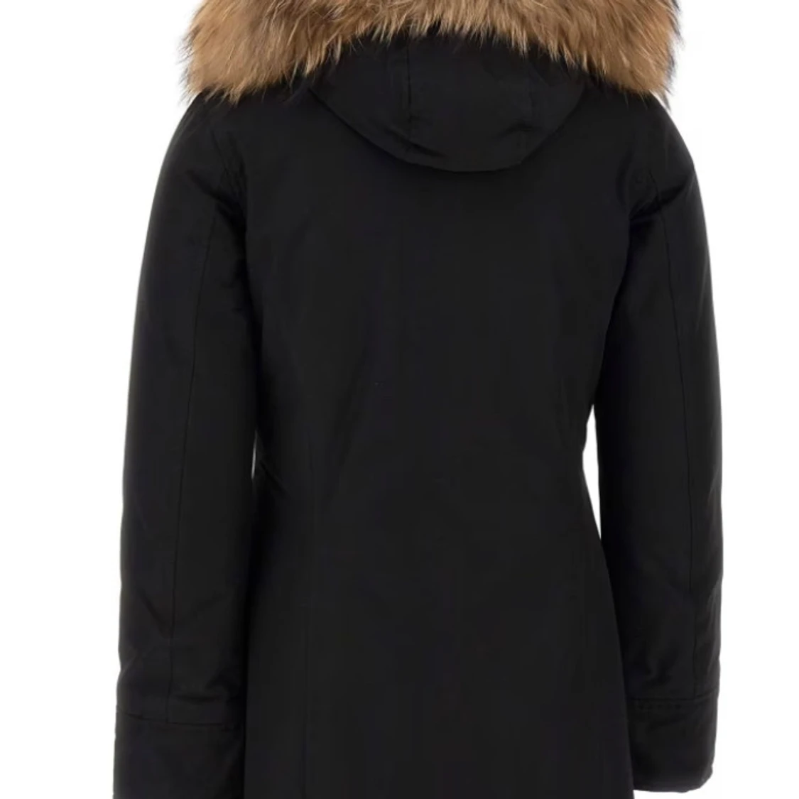 Svart parkajacka med pälsdetalj