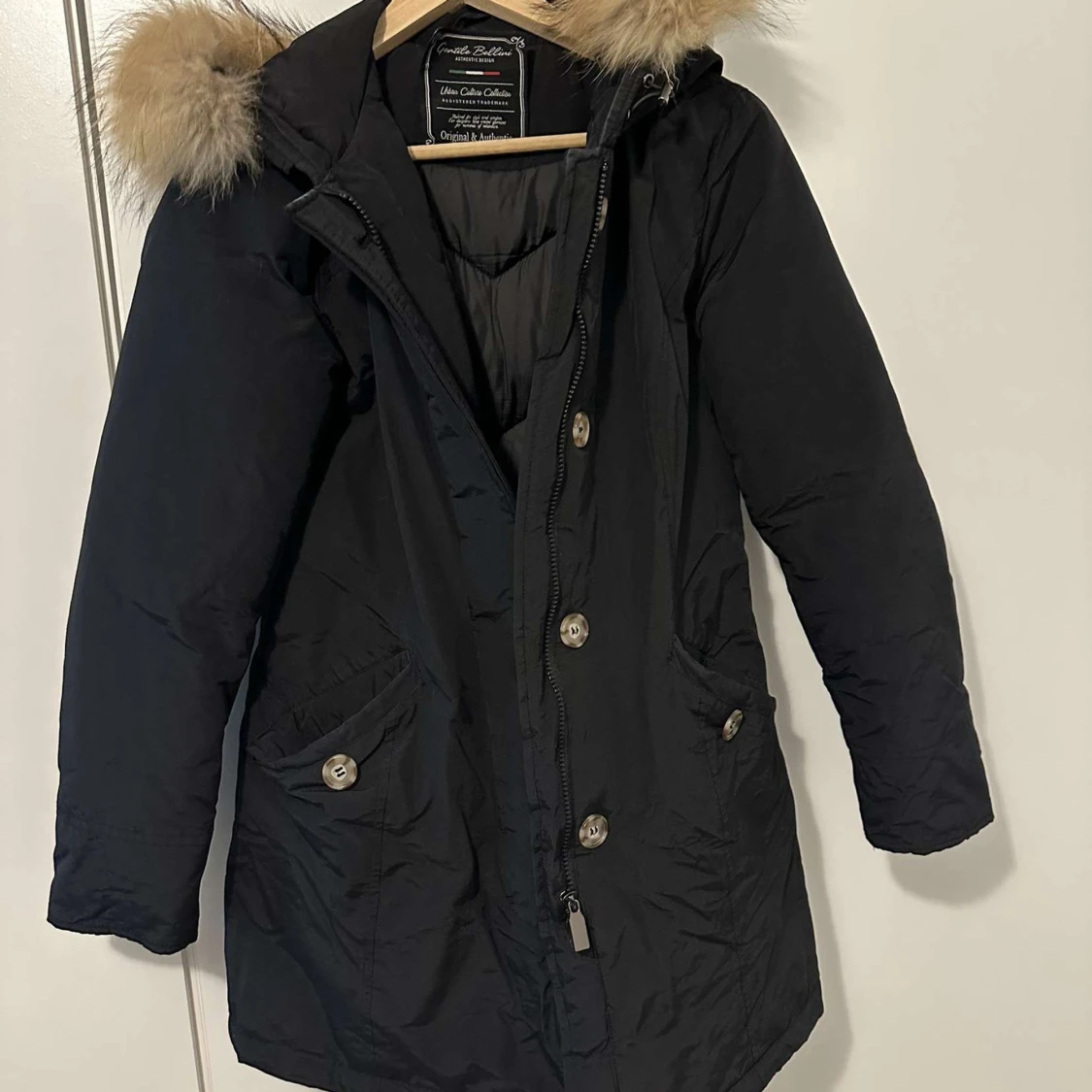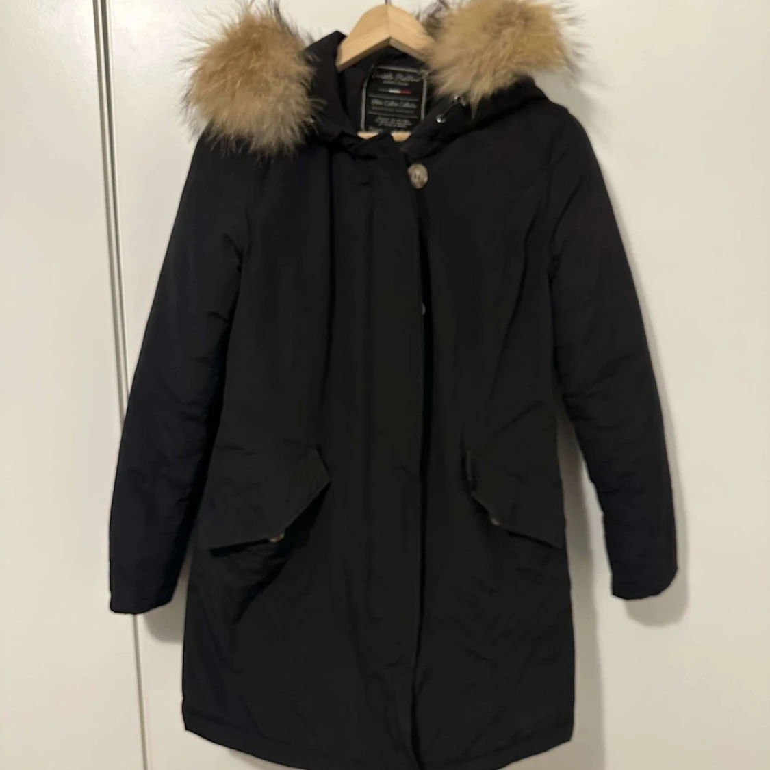 Snygg svart parkajacka ej använd så mke säljer den pga använder ej den och den är ÄKTA pris kan diskuteras