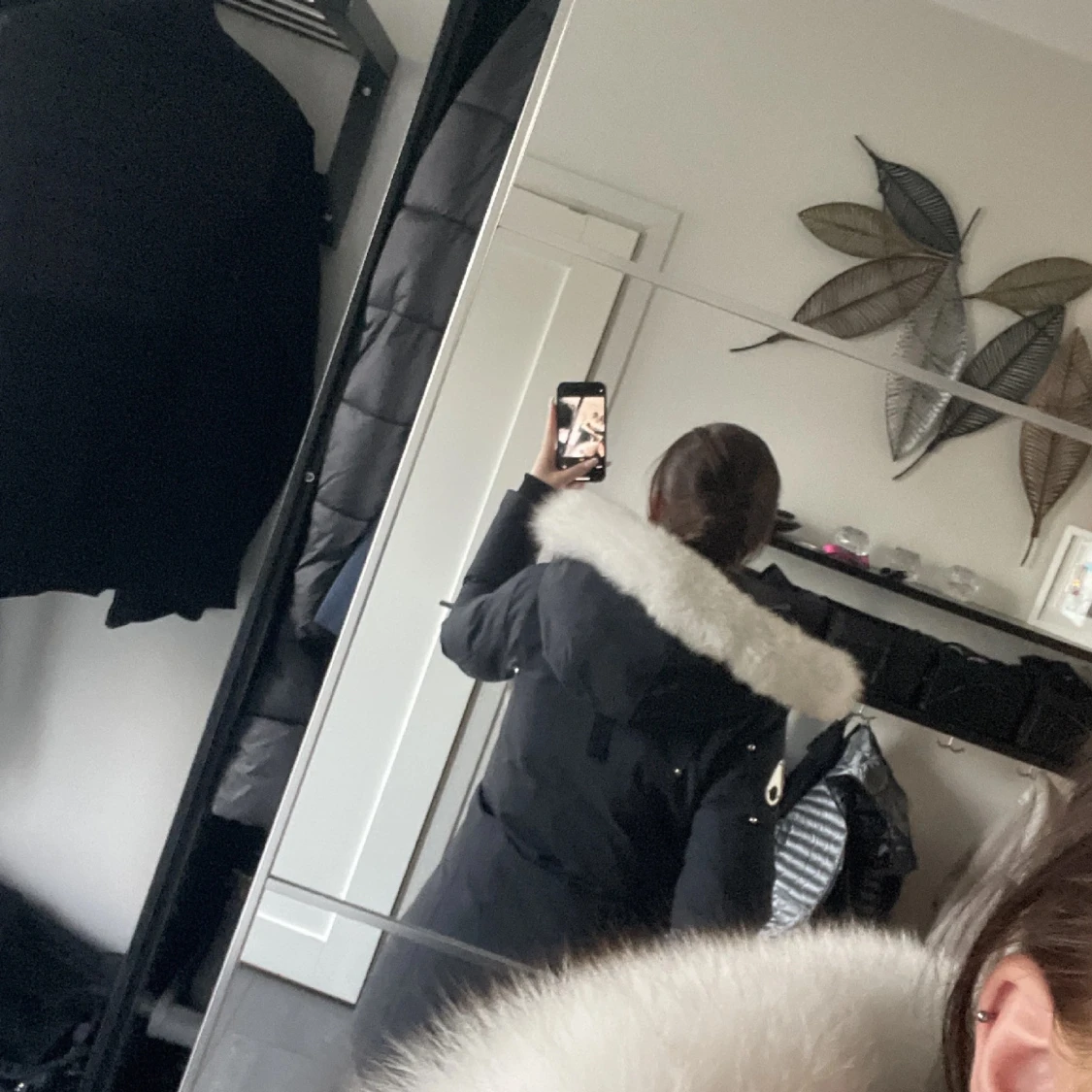 Säljer en svart parkas från Moose Knuckles med vit päls runt huvan och snygga detaljer på ärmen. Jackan har lång passform, dragkedja och knappar framtill samt fickor. Perfekt för kalla dagar och är väldigt fin.