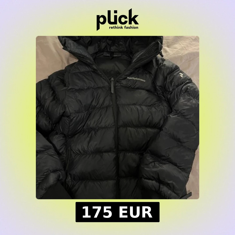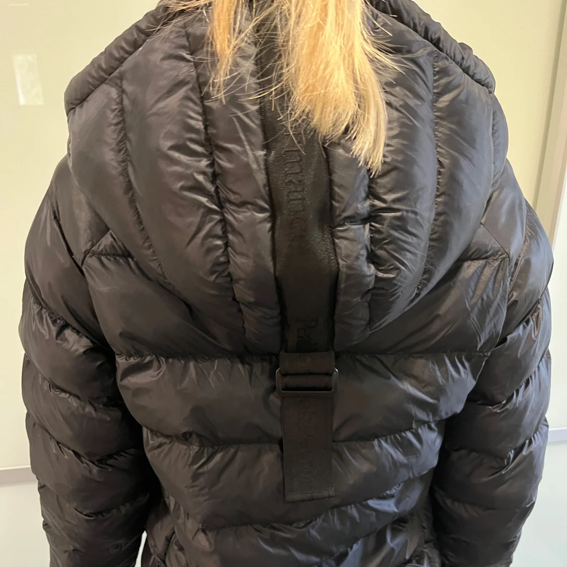 Säljer en svart dunjacka från Peak Performance med huva och snygga detaljer. Jackan har broderad logga på bröstet och är quiltad med dragkedja framtill. Perfekt för kalla dagar och har en cool, puffig look som sticker ut.