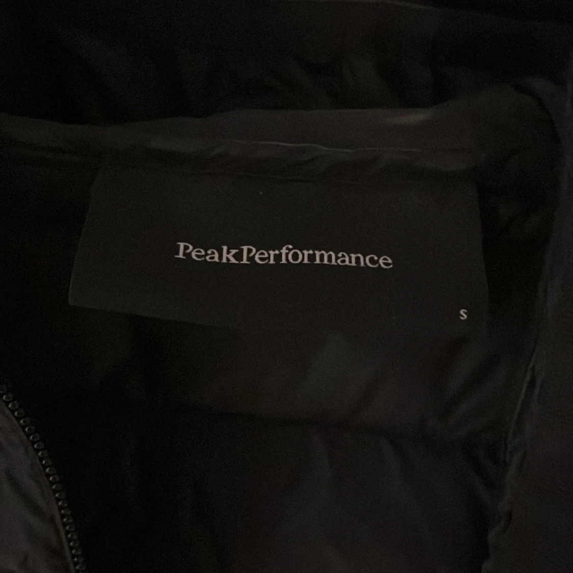 Svart dunjacka från Peak Performance i storlek S. Jackan har huva, dragkedja framtill. Jätte fin jacka knappt använd därför säljer jag💗
