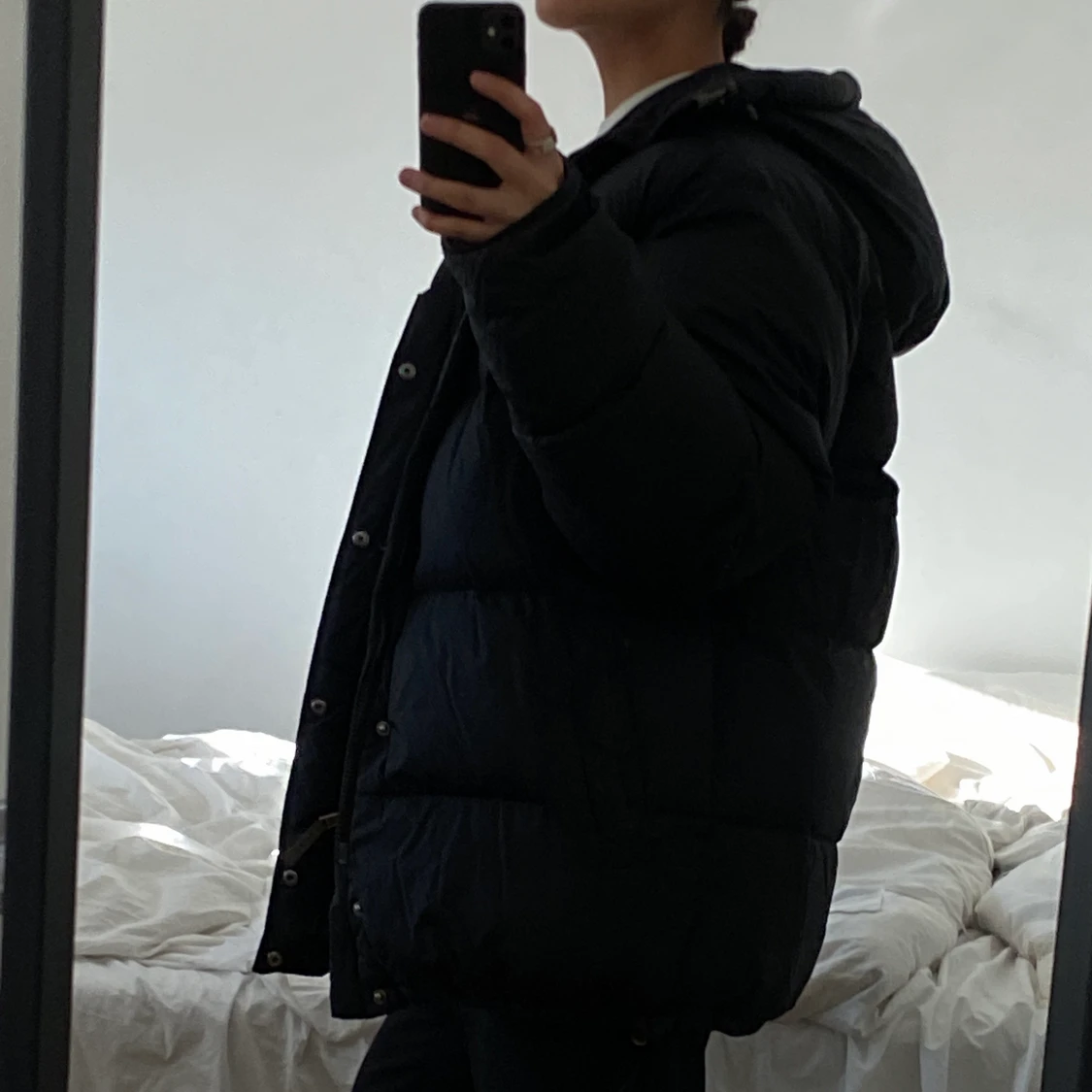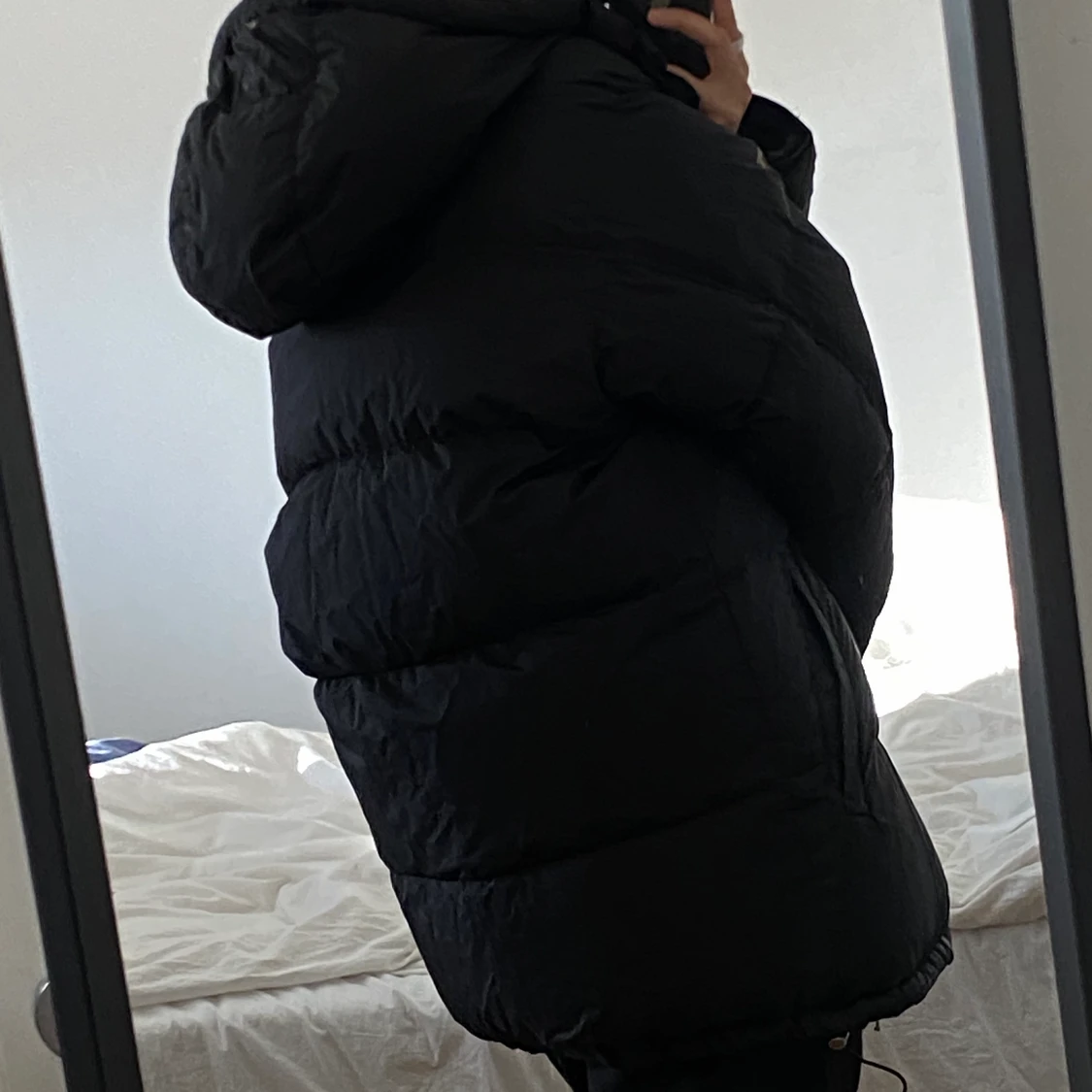 Svart peakjacka, superskönt när det är lite kyligt ute. Storlek L sitter snyggt som en oversized jacka på mig som vanligtvis har S/M