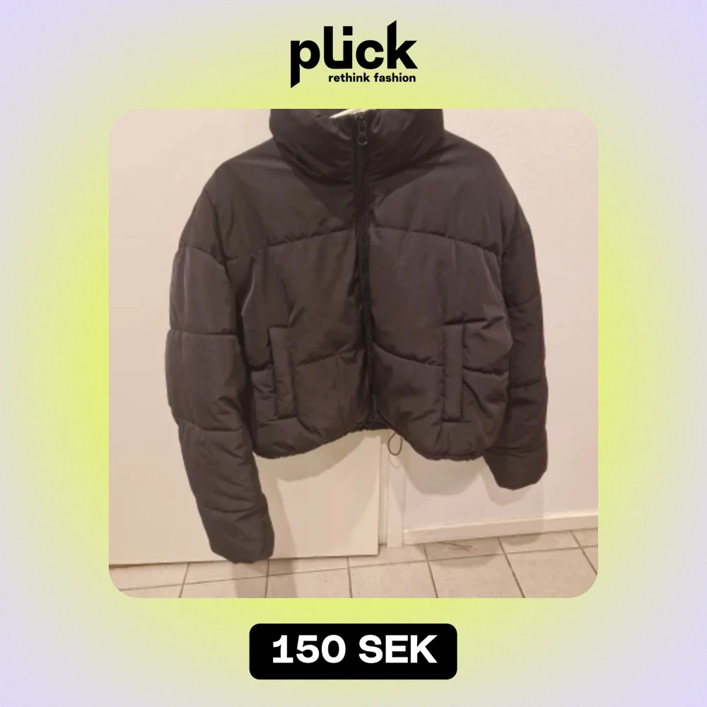 Säljer en svart pufferjacka som är perfekt för kyliga dagar. Jackan har en hög krage och dragkedja framtill. Den är quiltad och har långa ärmar för extra värme. Passar bra till både vardag och fest!