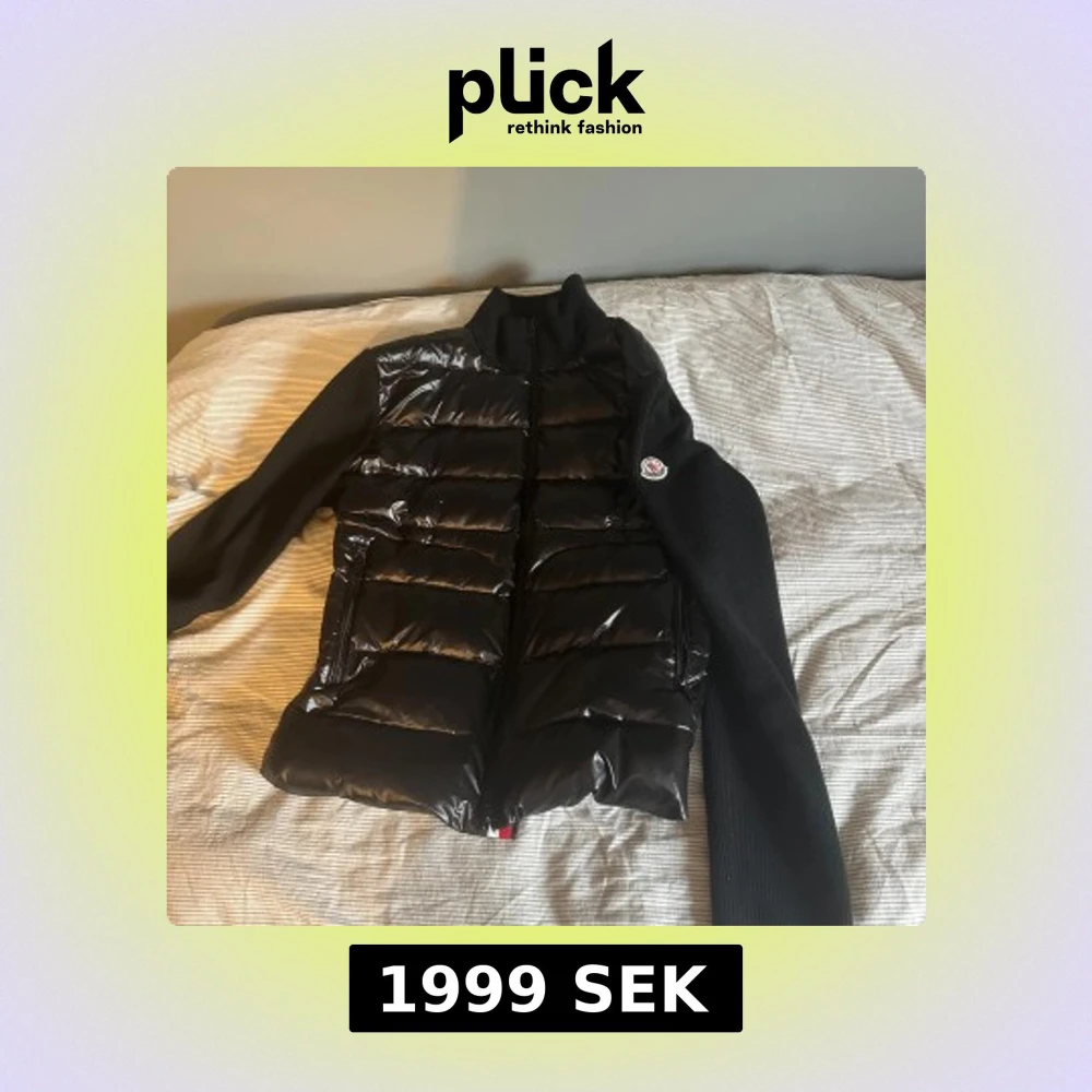 Säljer en svart pufferjacka från Moncler med glansig vadderad front och stickade ärmar. Jackan har dragkedja och Moncler-logga på ena ärmen. Perfekt för kyliga dagar och snygg till streetwear. Nfc tagg fungerar