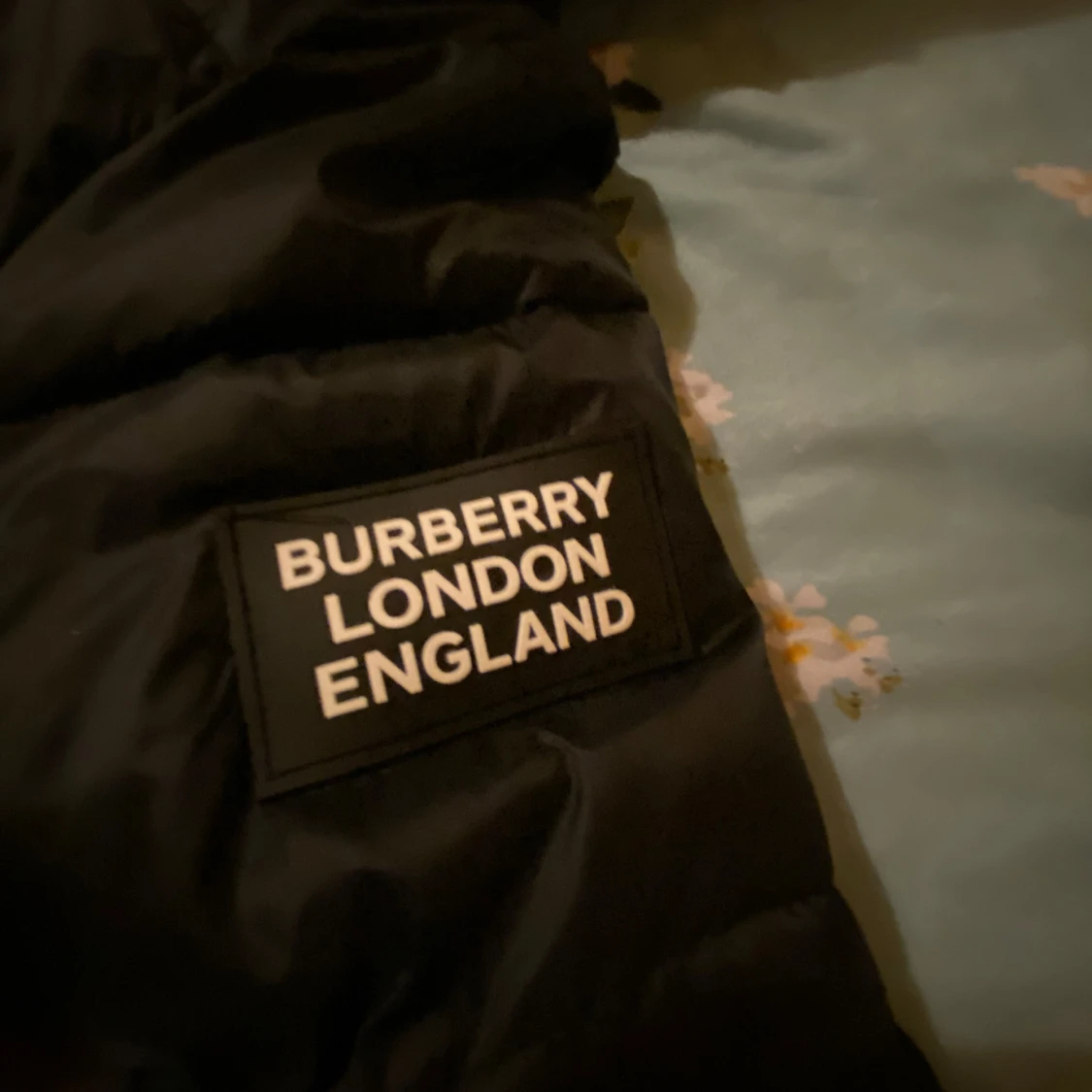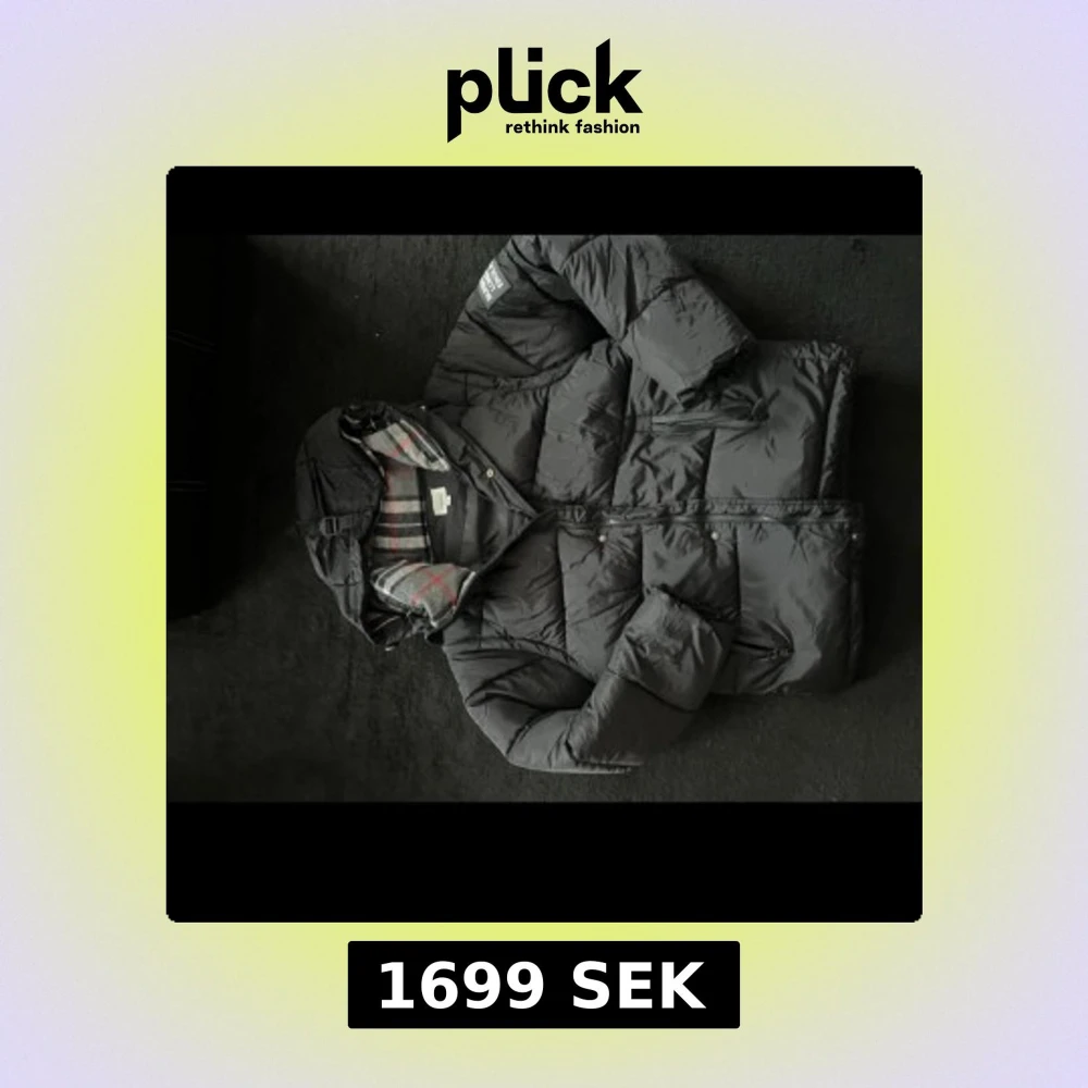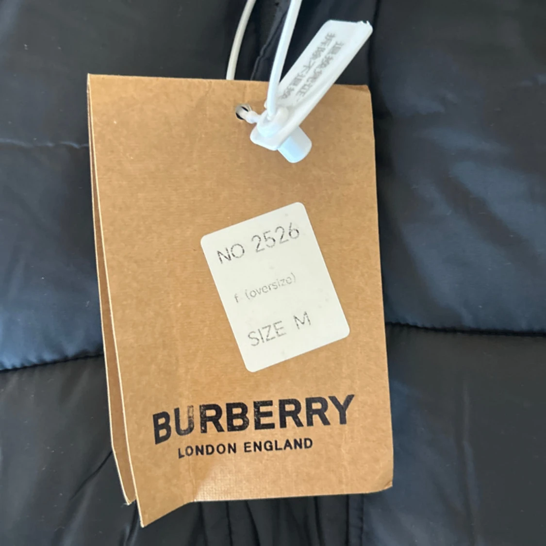 Svart pufferjacka från Burberry London England i storlek M, med oversize passform. Jackan har huva med klassiskt rutig foder i grått, vitt och rött, samt dragkedja framtill och flera fickor. Perfekt för kalla dagar med sin quiltade design och snygga detaljer.
