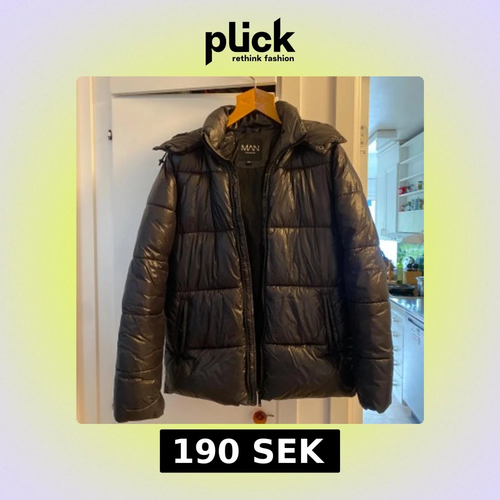 Säljer en svart pufferjacka från boohoo MAN med huva och dragkedja. Jackan är quiltad och har en glansig finish, perfekt för kalla dagar. Den har två fickor med dragkedja och en hög krage som skyddar mot vinden. Enkel och stilren design som funkar till det mesta. Är från mansavdelingen men jag som tjej har haft mycket glädje av den.