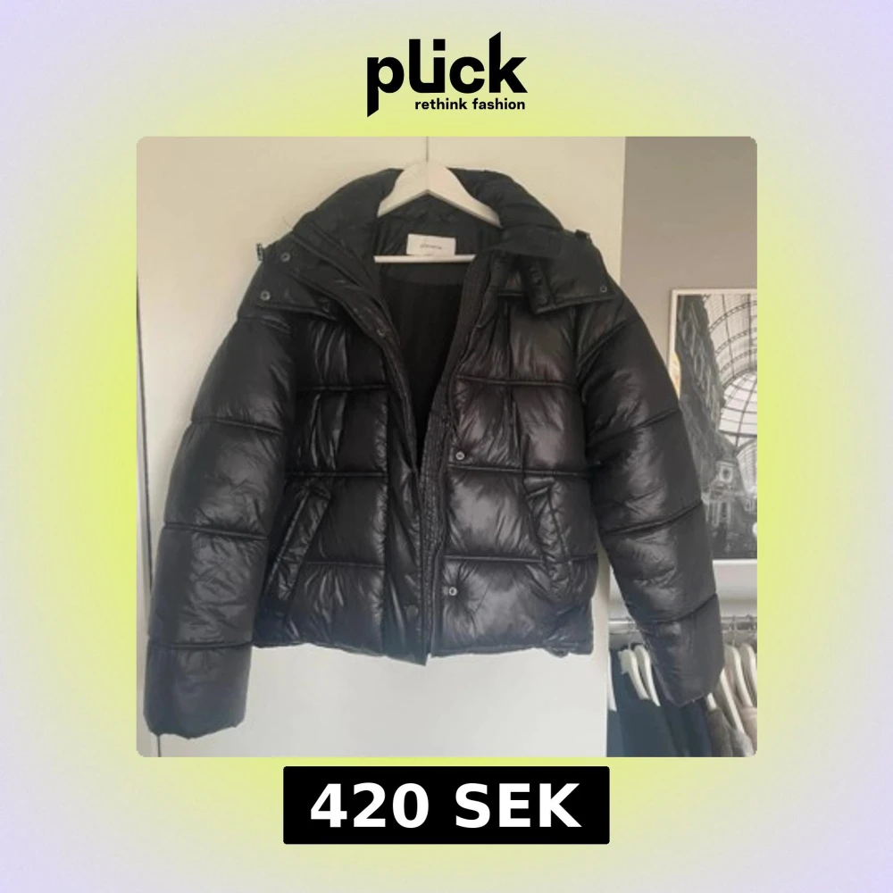 Säljer en svart pufferjacka från Bubbleroom med huva och quiltad design. Använd max 2ggr o köptes för 899kr