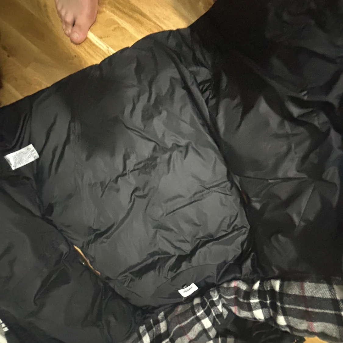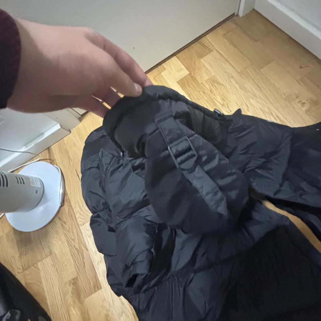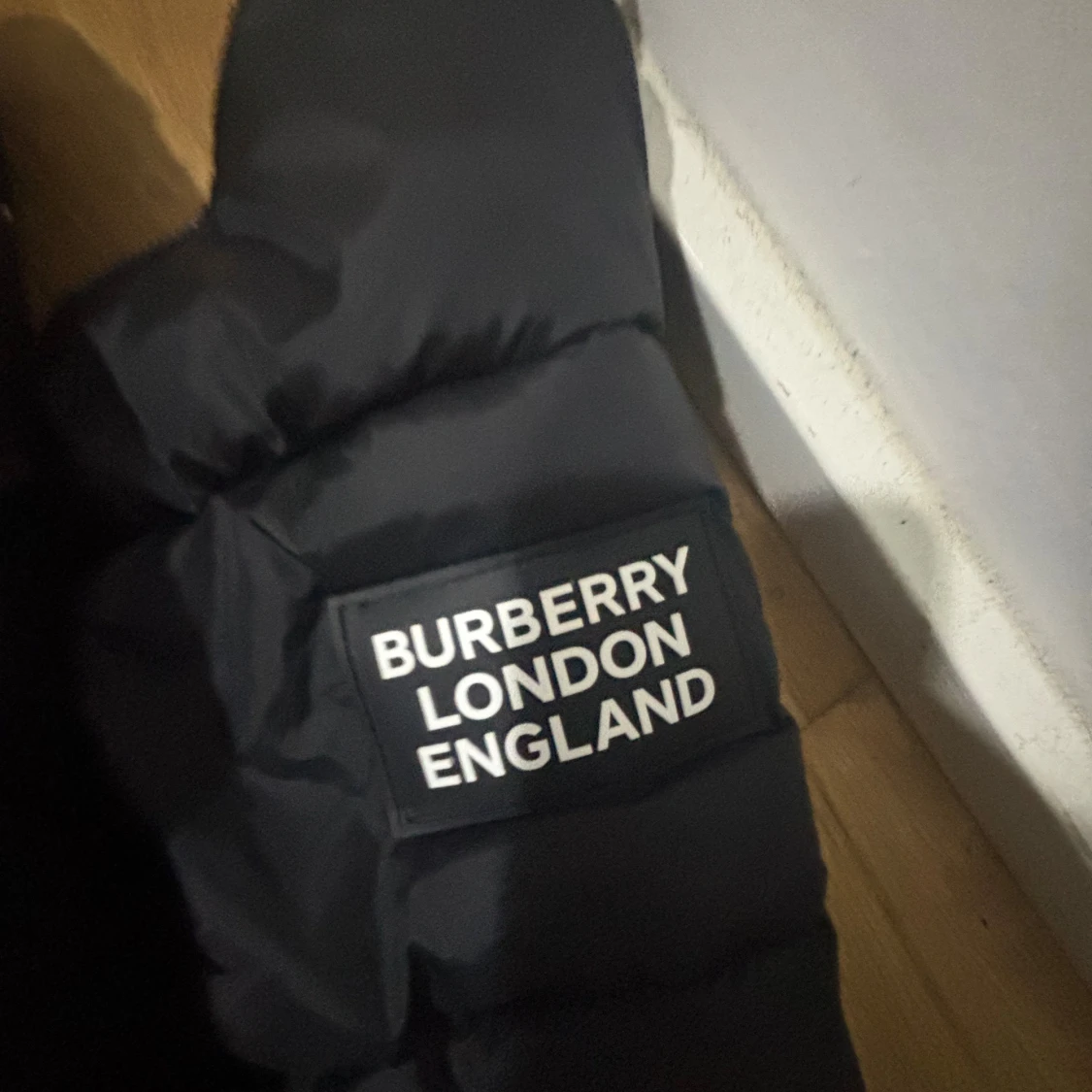 Säljer en svart pufferjacka från Burberry med stor huva och tydlig logga på ärmen. Jackan har dragkedja och knappar framtill samt två sidofickor med dragkedja. Perfekt för kalla dagar och riktigt snygg streetstil.