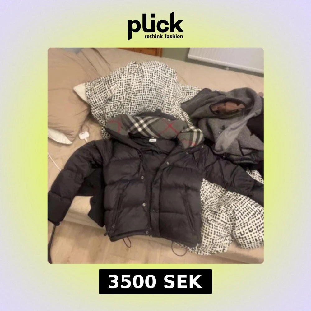 Säljer en svart pufferjacka från Burberry med klassiskt rutigt foder i huvan. Jackan har dragkedja och knappar framtill samt en tydlig Burberry London England-patch på ärmen. Perfekt för kalla dagar och riktigt snygg streetstil.