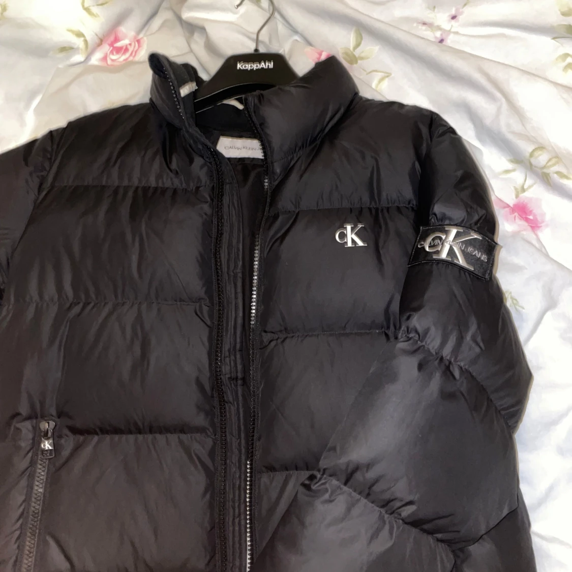 Snygg svart pufferjacka från Calvin Klein med dragkedja och logotyp på bröstet och ärmen. Storlek XL men jag har M/L och den sitter perfekt på mig. Jackan har praktiska fickor med dragkedja. Bara höra av sig vid frågor och funderingar🫡🥶