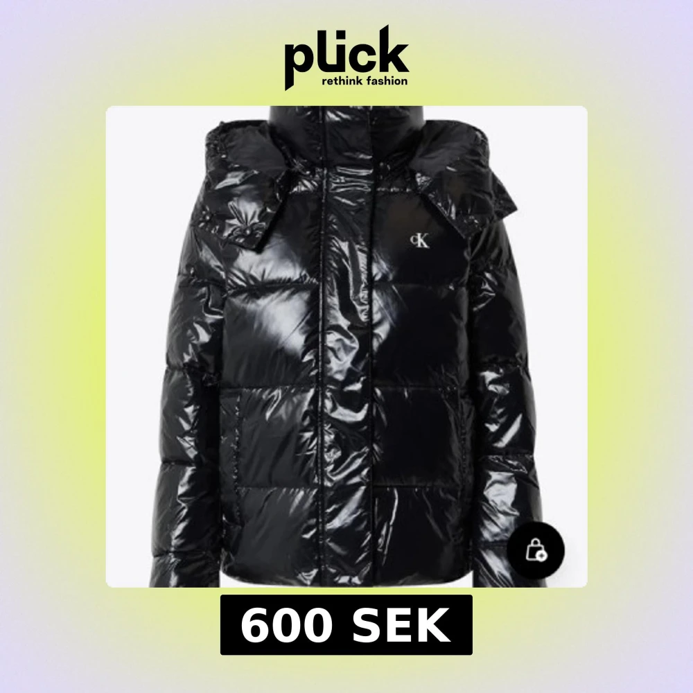 Säljer en glansig svart pufferjacka från Calvin Klein med hög krage och diskret CK-logo på bröstet. Jackan har quiltad design, dragkedja framtill och är perfekt för kalla dagar. Snygg och modern look som håller dig varm hela vintern.