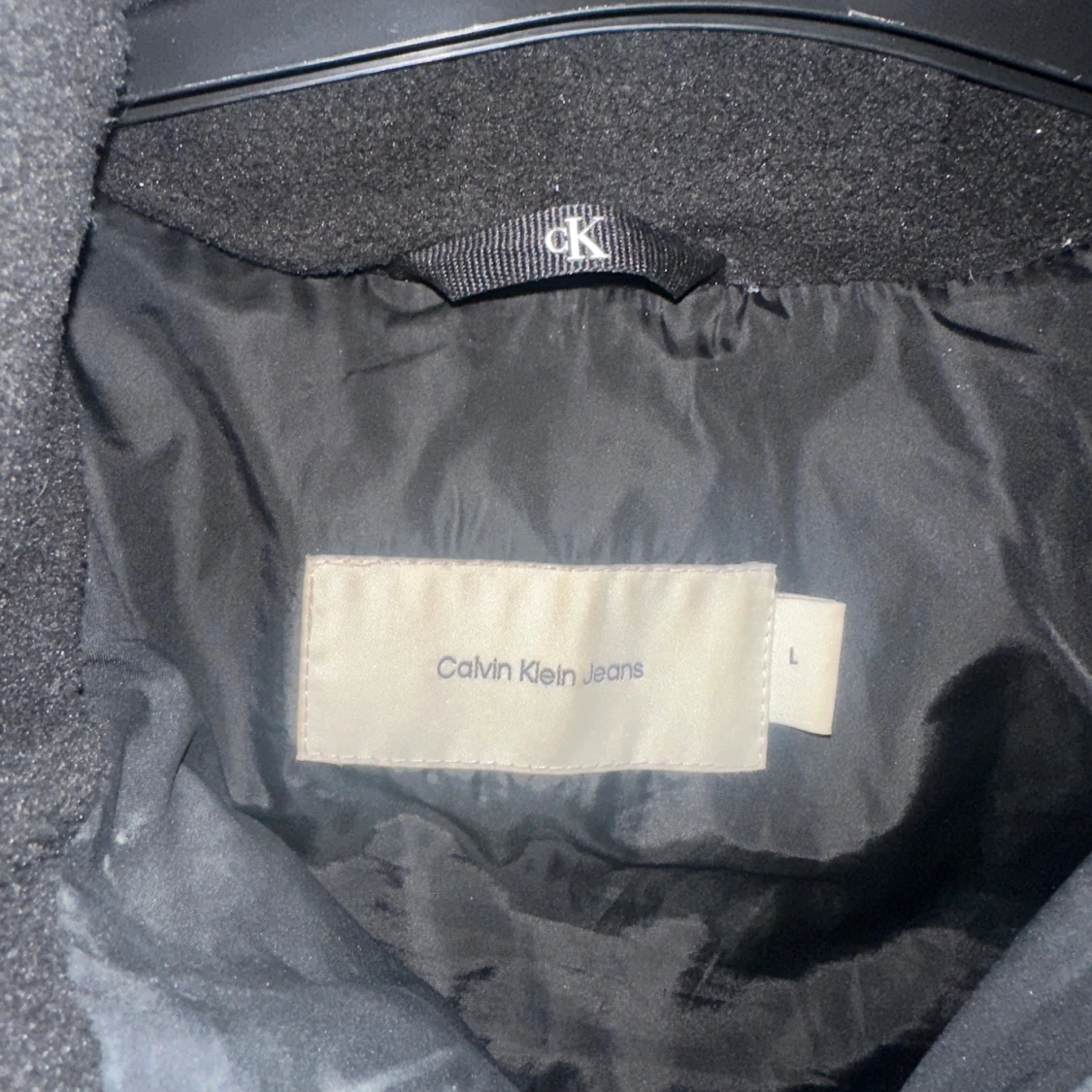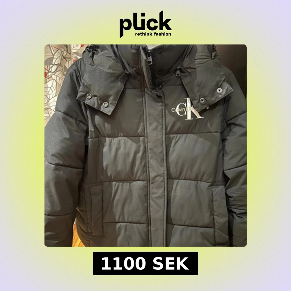 Svart pufferjacka från Calvin Klein Jeans med stor CK-logga på bröstet. Jackan har huva med tryckknappar, dragkedja och paneler som ger en schysst quiltad look. Perfekt för kalla dagar och riktigt snygg till streetwear-stilen.