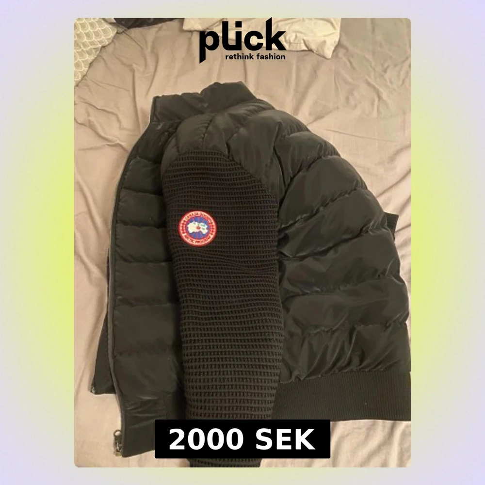 Säljer en svart pufferjacka från Canada Goose med stickade ärmar och klassisk logga på vänster arm. Jackan har två dragkedjeförsedda fickor fram, ribbade muddar och hög krage. Perfekt för kalla dagar och har en modern, clean look. Inte använt alls mycket passar både s och m