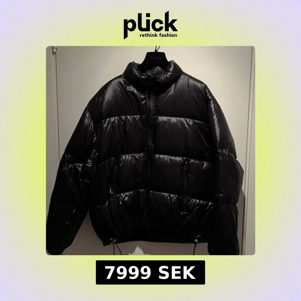 Tjaa, jag säljer en svart pufferjacka från Celine Paris med matt glansig finish. Jackan i sig är trevlig men det blev lite problem med den förra ägaren där den inte nämnde att den var en damjacka samt storlek L. Sen dess har den hängt i garderoben cirka 3 år. Innan jag köpte jackan tog även förra ägaren bort Celine märket på yttersidan då den hade börjat att släppa, vilket kan fixas i en Celine butik. Kan även användas för en herr, men påminner om en balenciaga utseende. Begagnade ~8-12k