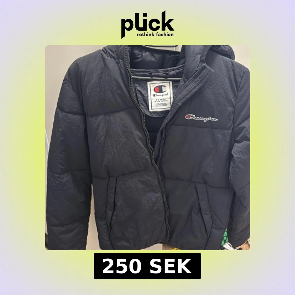Säljer en svart pufferjacka från Champion i storlek XL. Yrs 13/14. Jackan har huva, dragkedja framtill och två sidofickor. Klassisk Champion-logga broderad på bröstet. Perfekt för kalla dagar när du vill hålla stilen och värmen. And its new! Never wore it out😇