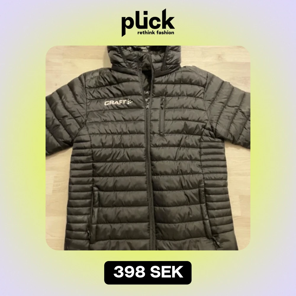 Säljer en svart lättvikt/pufferjacka från Craft. Nypris 999kr. Den är perfekt för kyliga dagar med sin quiltade design och långa ärmar. Jackan har en dragkedja framtill och en praktisk huva. Den är i bra skick och redo för nya äventyr!