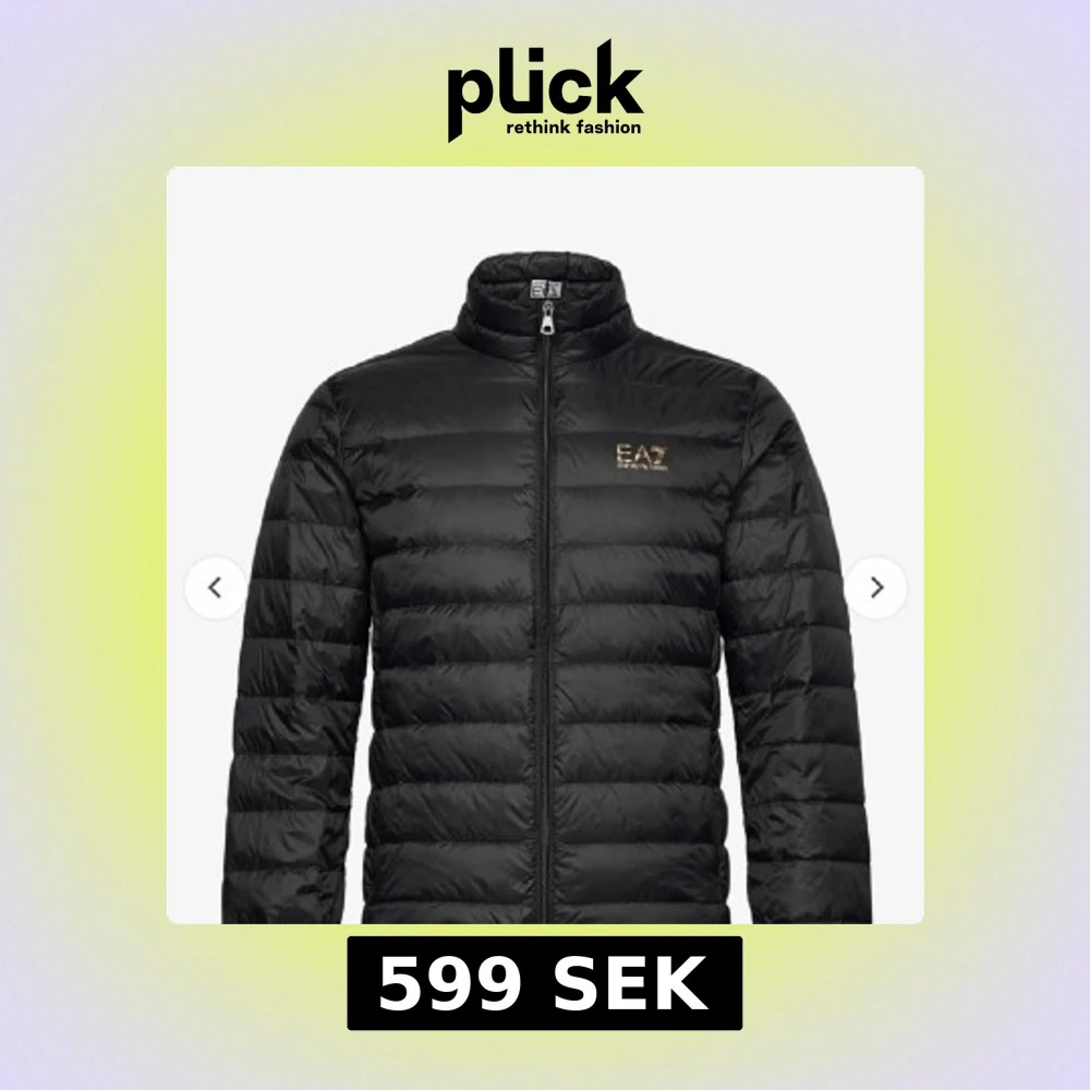 Svart pufferjacka från EA7 Emporio Armani med guldfärgat logotryck på bröstet. Jackan har ståkrage, dragkedja framtill och quiltad design. Perfekt för dig som vill ha en stilren och varm jacka med exklusiv känsla. Passar mer som S