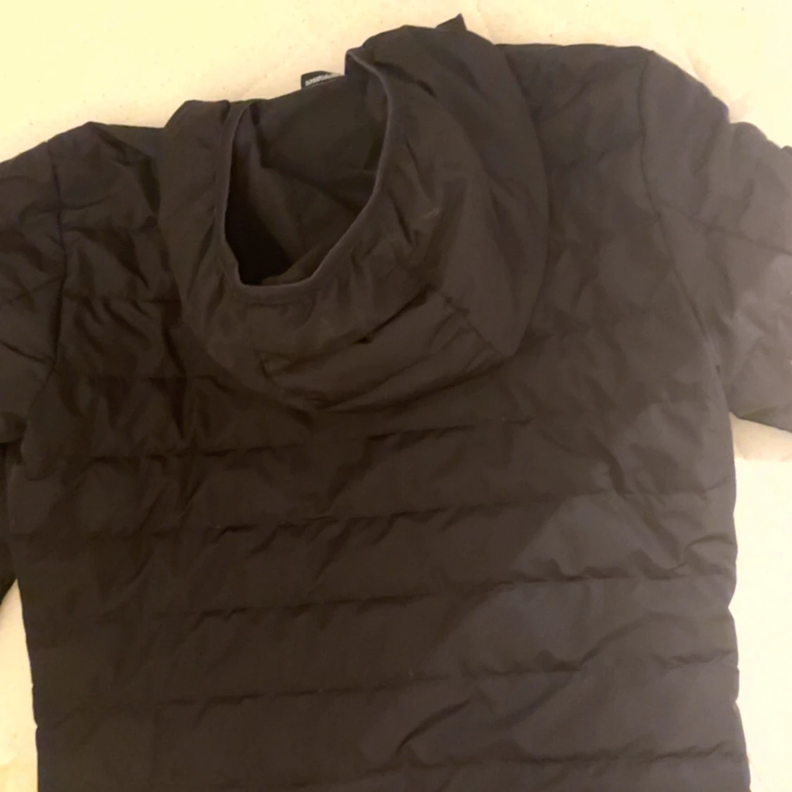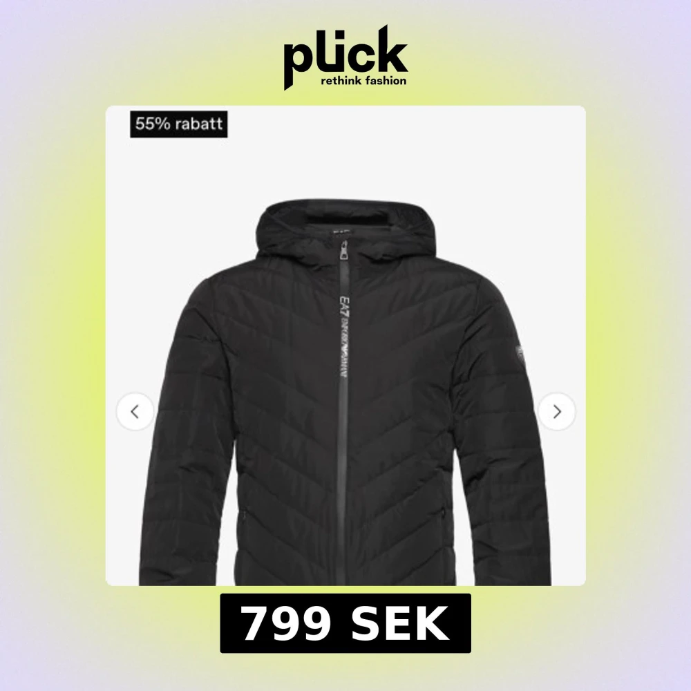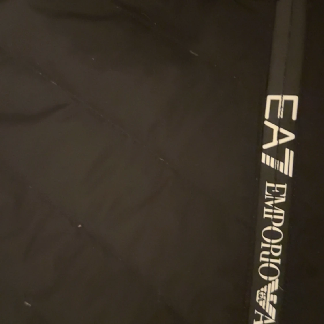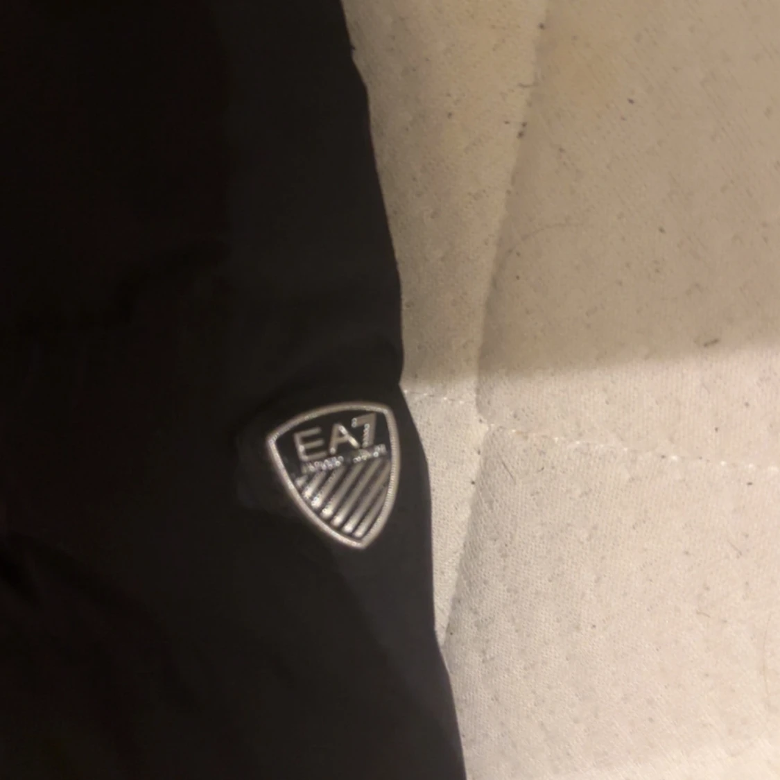 Svart pufferjacka från EA7 Emporio Armani med huva och dragkedja framtill. Jackan har diskret logga på ärmen och EA7-tryck längs dragkedjan. Snygg, knappast använd, säljer för den är för liten på mig, passar XS/S, Pris kan diskuteras