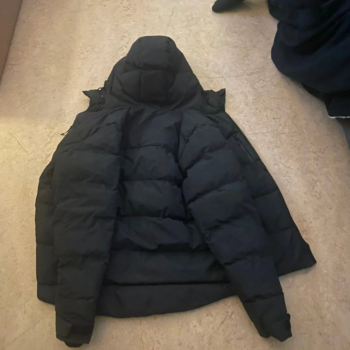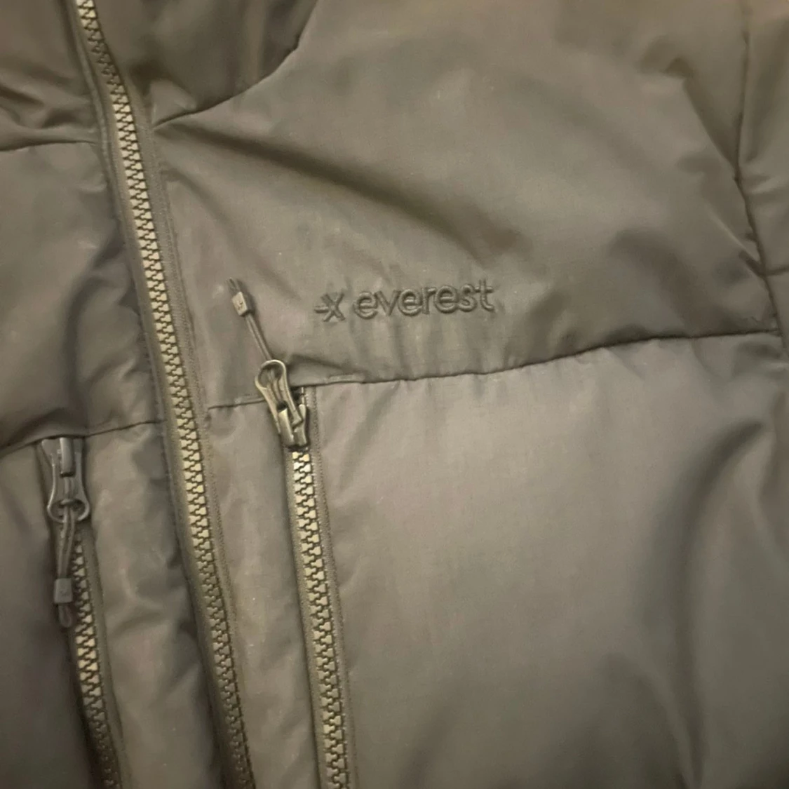 Svart pufferjacka från Everest med huva och flera dragkedjor framtill. Jackan har en quiltad design och är tillverkad i syntetmaterial. Perfekt för kalla dagar med sin tjocka och isolerande känsla. Snygg, enkel och passar till streetwear. Pris kan diskuteras vid snabb affär!!!