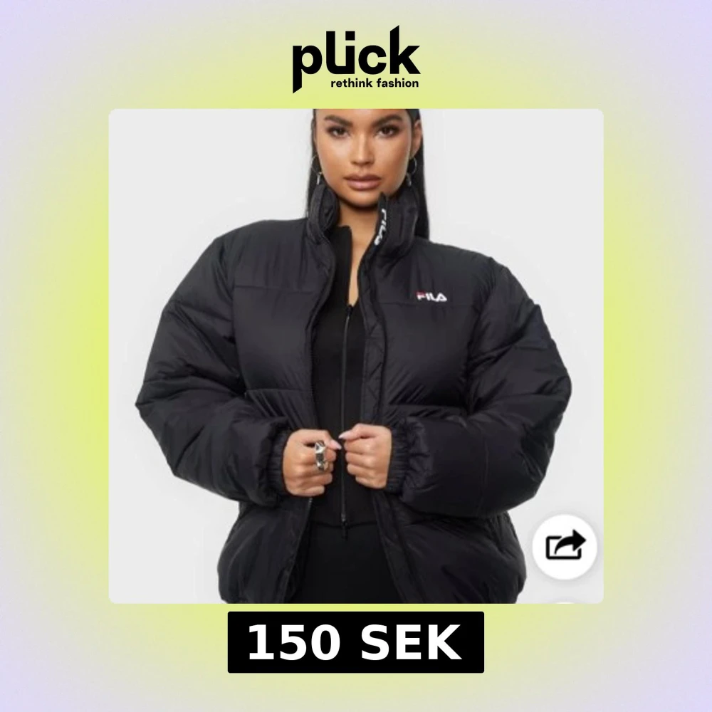 Säljer en svart pufferjacka från FILA med dragkedja och hög krage. Jackan har en broderad logotyp på bröstet och är perfekt för kyligare dagar. Den har en normal passform och är långärmad. Använd men fortfarande hel och i bra skick!