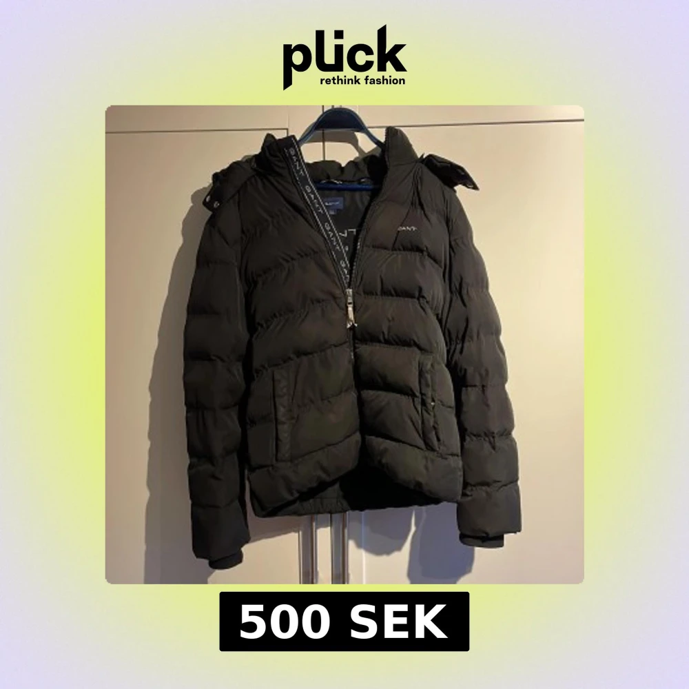 Svart pufferjacka från GANT med huva och dragkedja framtill. Jackan har två stora fickor och GANT-logga på bröstet samt längs dragkedjan. Perfekt för kalla dagar och riktigt snygg streetstil. Hör av dig vid minsta fundering 👍✅